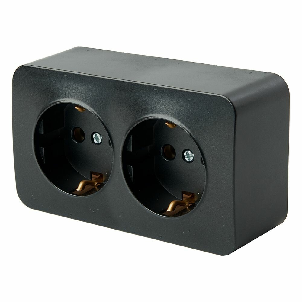 Розетка накладная STEKKER София, 2 гнезда, без заземления, IP20, черный 315 ₽