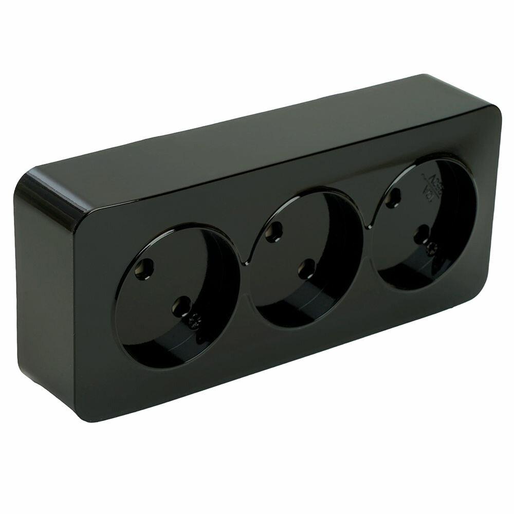 Розетка 3-местная б/з открытой установки, STEKKER, 250В, 10А, IP20, серия София, черный, MST10-13-02 информация: