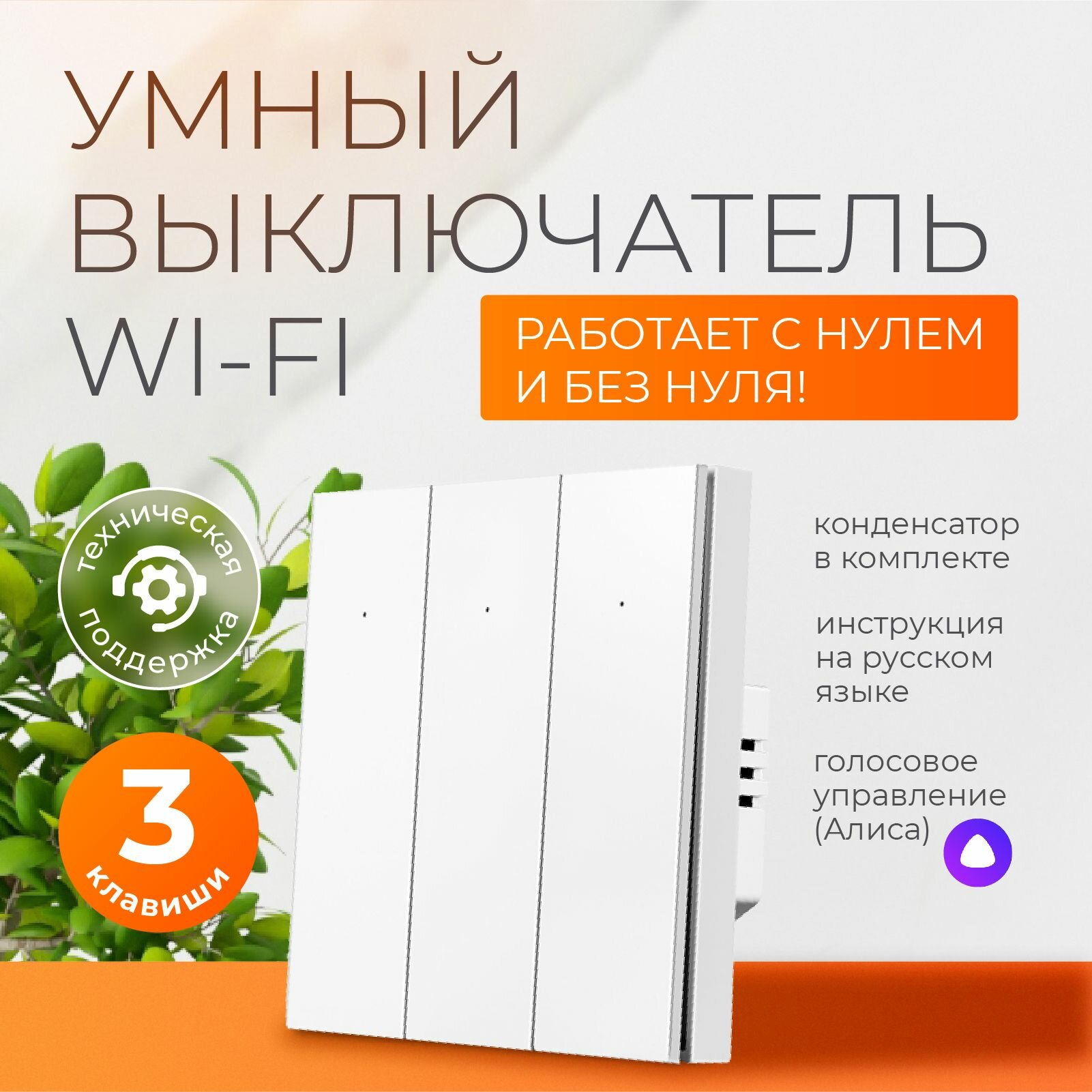 Умный выключатель с Алисой и wi-fi трёхклавишный белый умный дом информация: