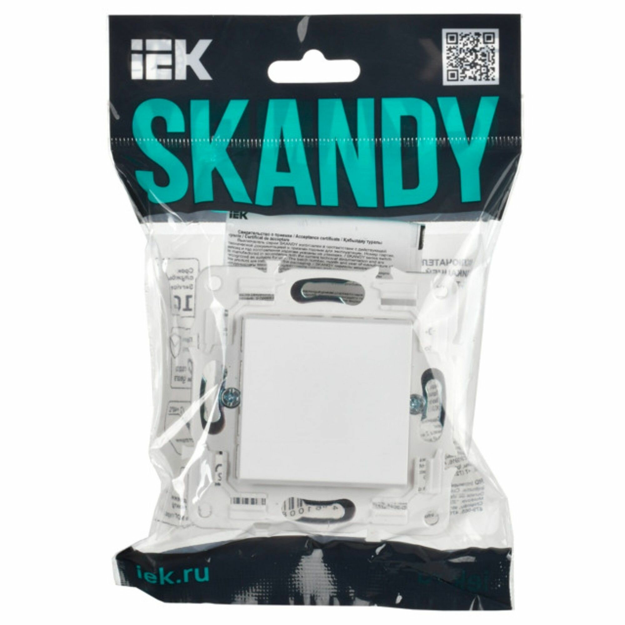 Выключатель 1-клавишный IEK Skandy проходной 10А арктический белый информация: