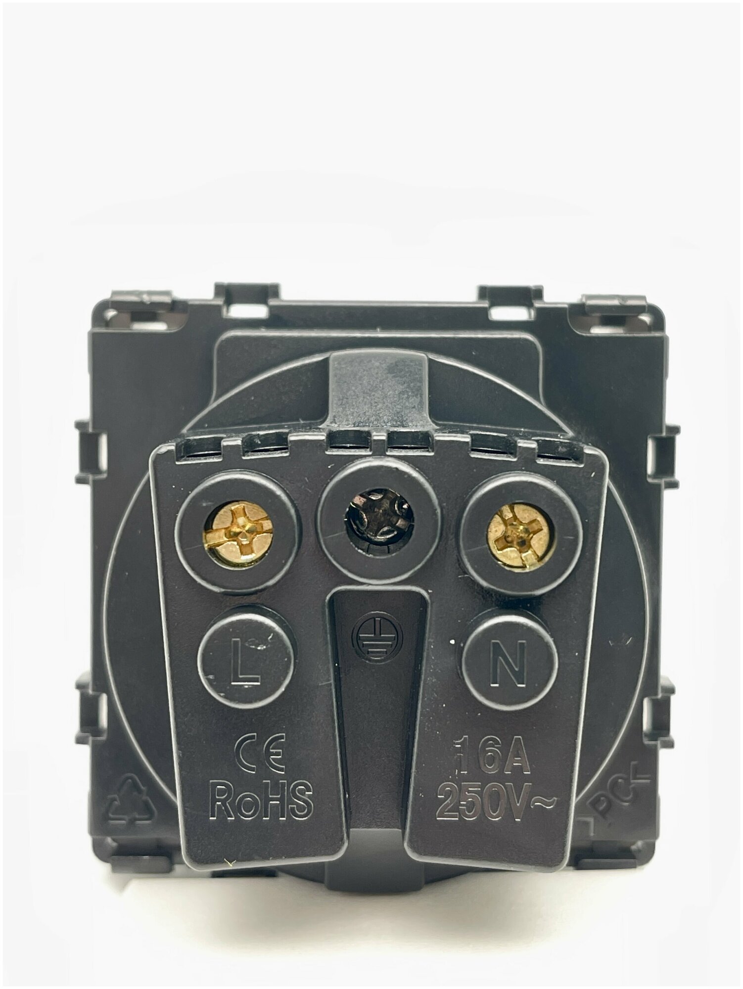 Модуль розетки одинарный с заземлением, без рамки и без защитной крышкой от влаги, детей, на 16 А, черный 599 ₽