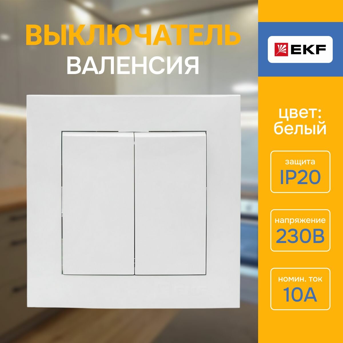 Выключатель двухклавишный EKF PROxima Валенсия белый, 10А, IP20 информация: