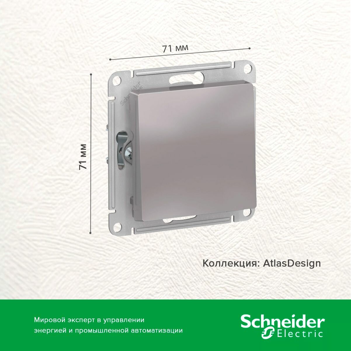 Выключатель одноклавишный Schneider Electric / Systeme Electric AtlasDesign, 10А, стальной / включатель-выключатель одинарный Шнайдер Электрик Атлас Дизайн 894 ₽
