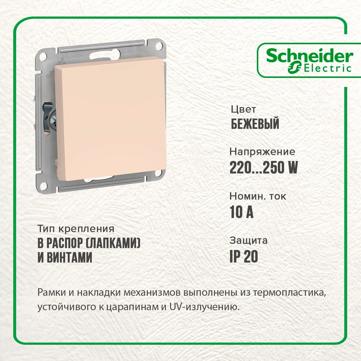 Выключатель одноклавишный бежевый Schneider Electric / Systeme Electric AtlasDesign / включатель-выключатель одинарный Шнайдер Электрик Атлас Дизайн информация: