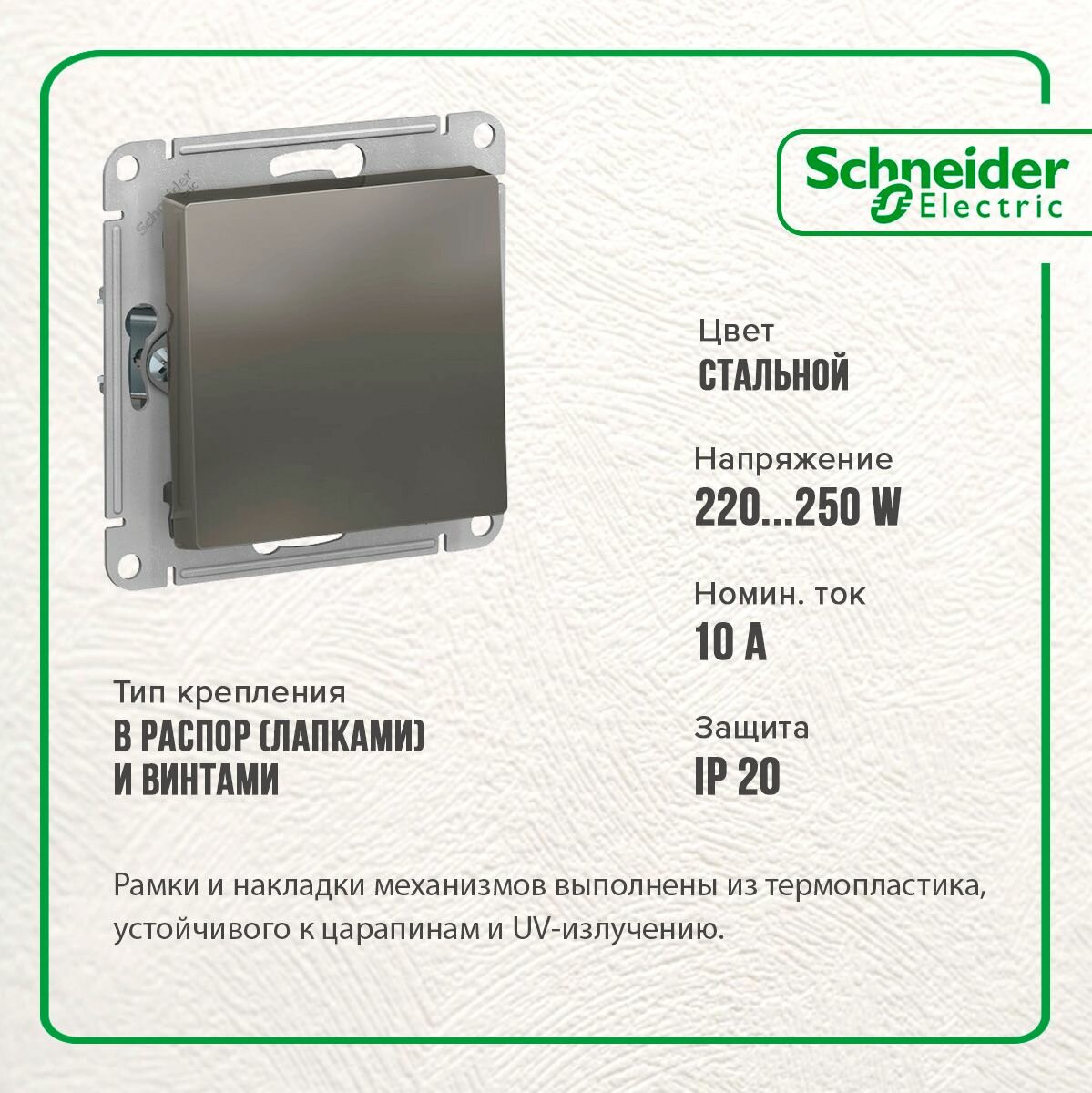 Отзывы на Выключатель одноклавишный Schneider Electric / Systeme Electric AtlasDesign, 10А, стальной / включатель-выключатель одинарный Шнайдер Электрик Атлас Дизайн