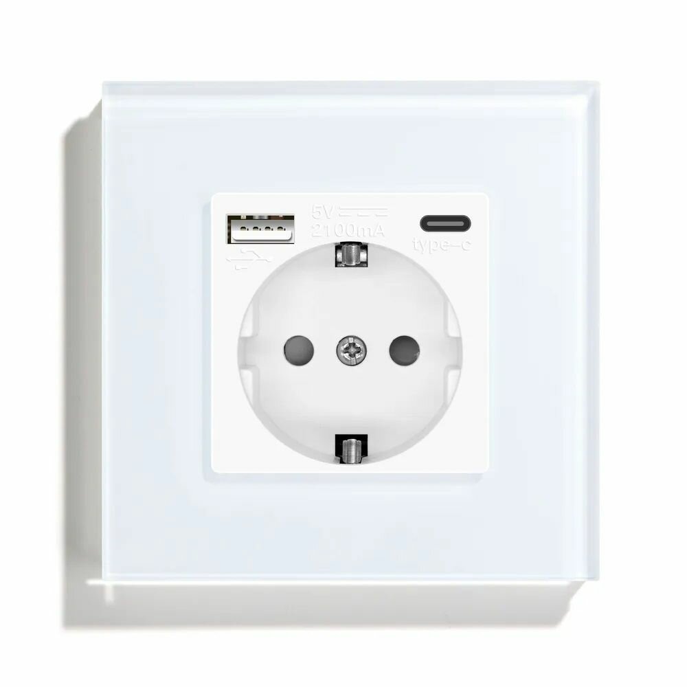 Отзывы на Розетка электрическая с Usb/Type-C AC, 1 пост 16А, рамка 86х86 стекло, цвет белый