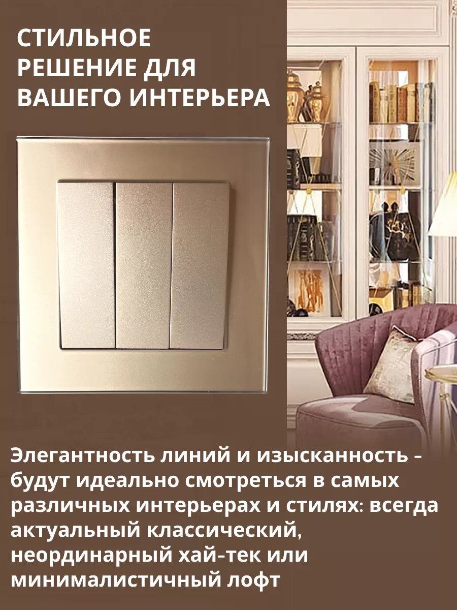 Выключатель STEKKER Катрин, трехклавишный, шампань, 250 В, 10 А информация: