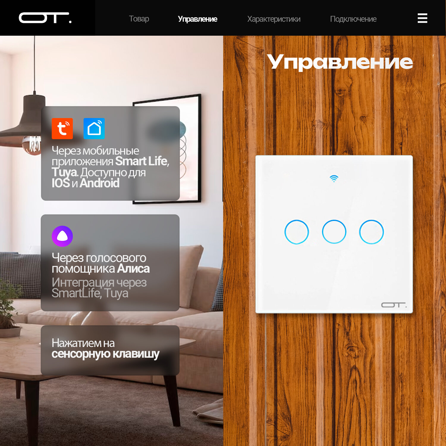Умный выключатель с Алисой трёхклавишный Wi-Fi 10A Орбита OT-HOS12 информация: