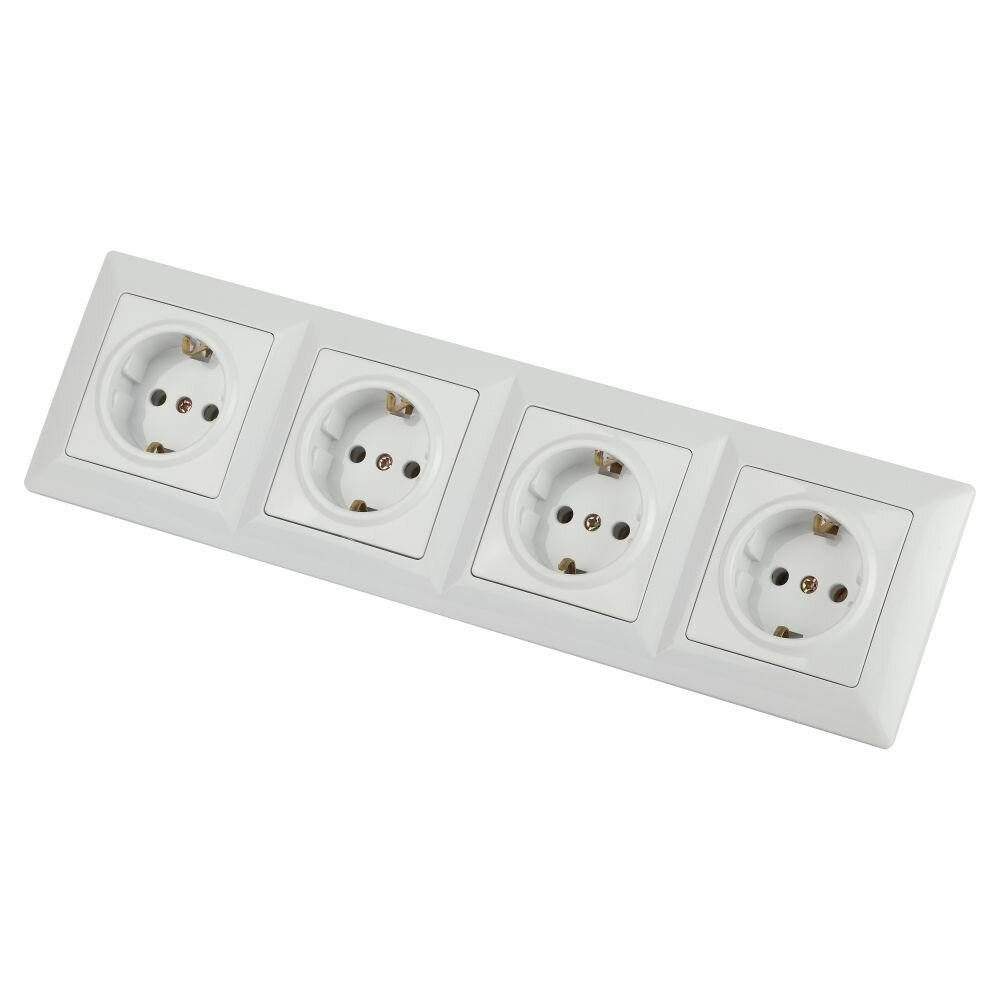 Розетка Intro Solo, четверная, с заземлением, пластик, белый, 16A информация: