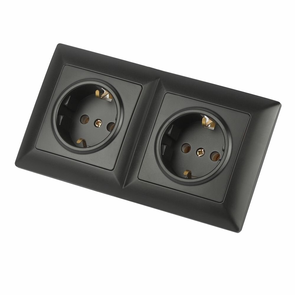 Розетка двойная Intro Solo с заземлением чёрный информация: