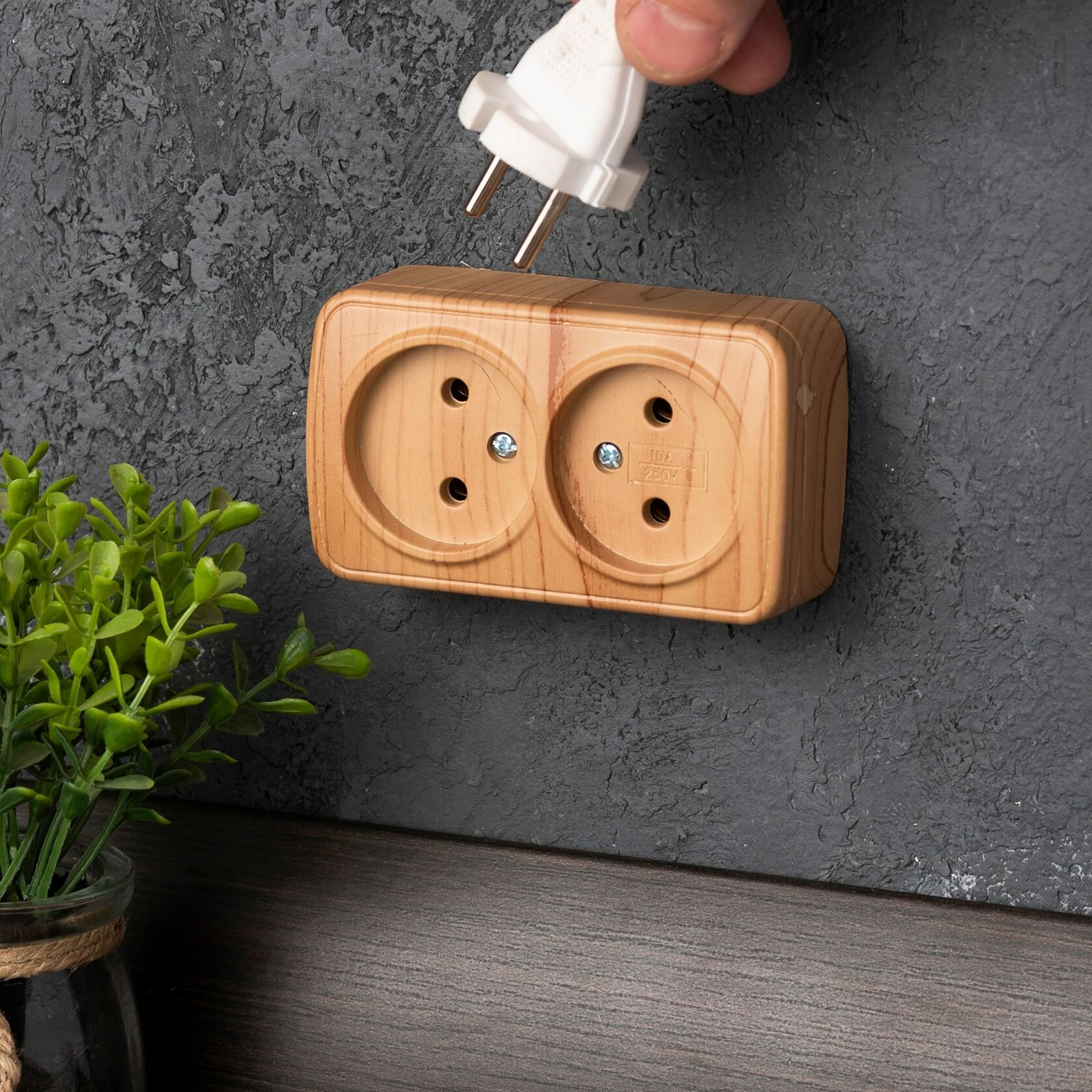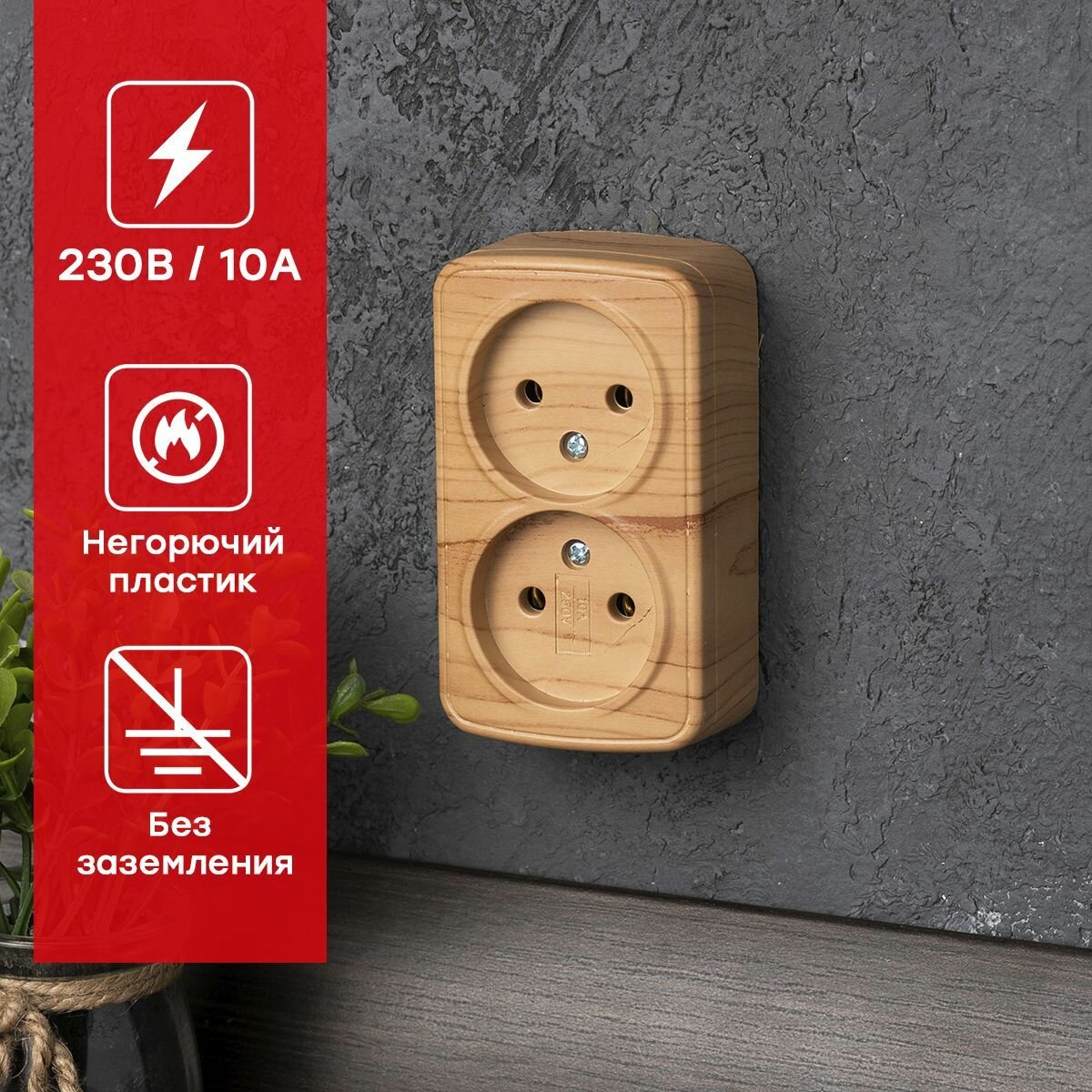 Отзывы на Розетка 2-местная ОП Минск, 10А, без заземления, светлое дерево