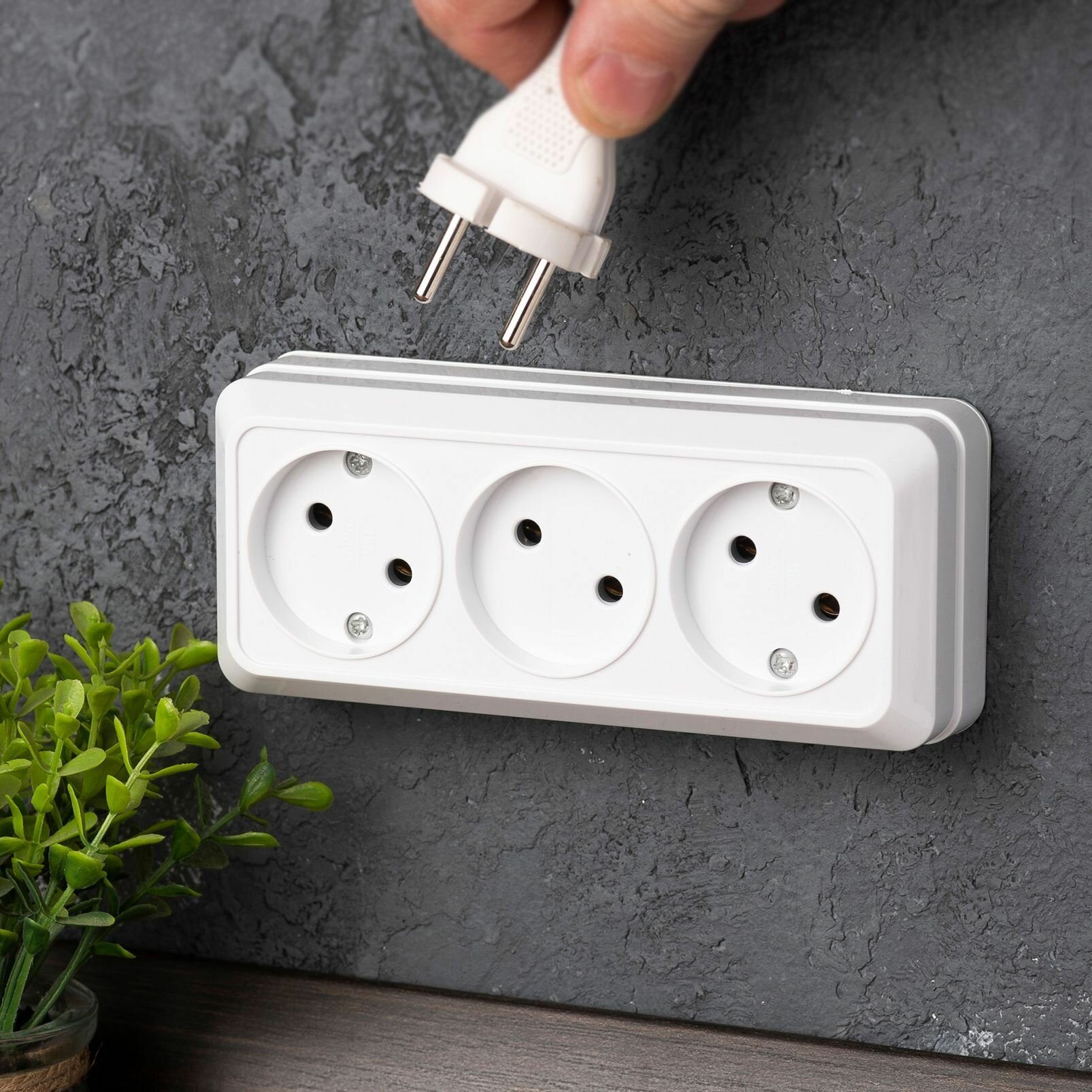 Отзывы на Рим Розетка 3-местная 10А без заземления белая EKF открытой установки IP20