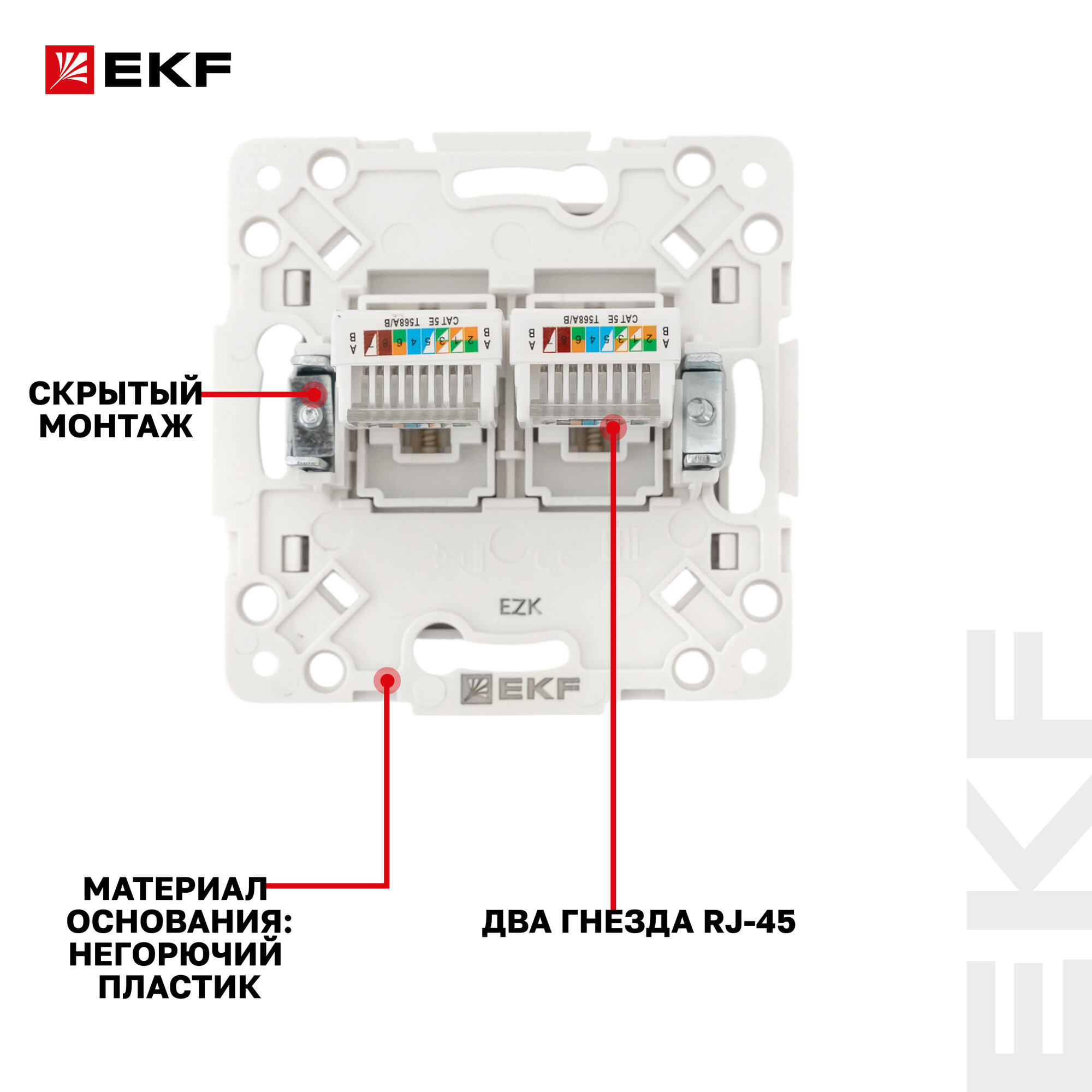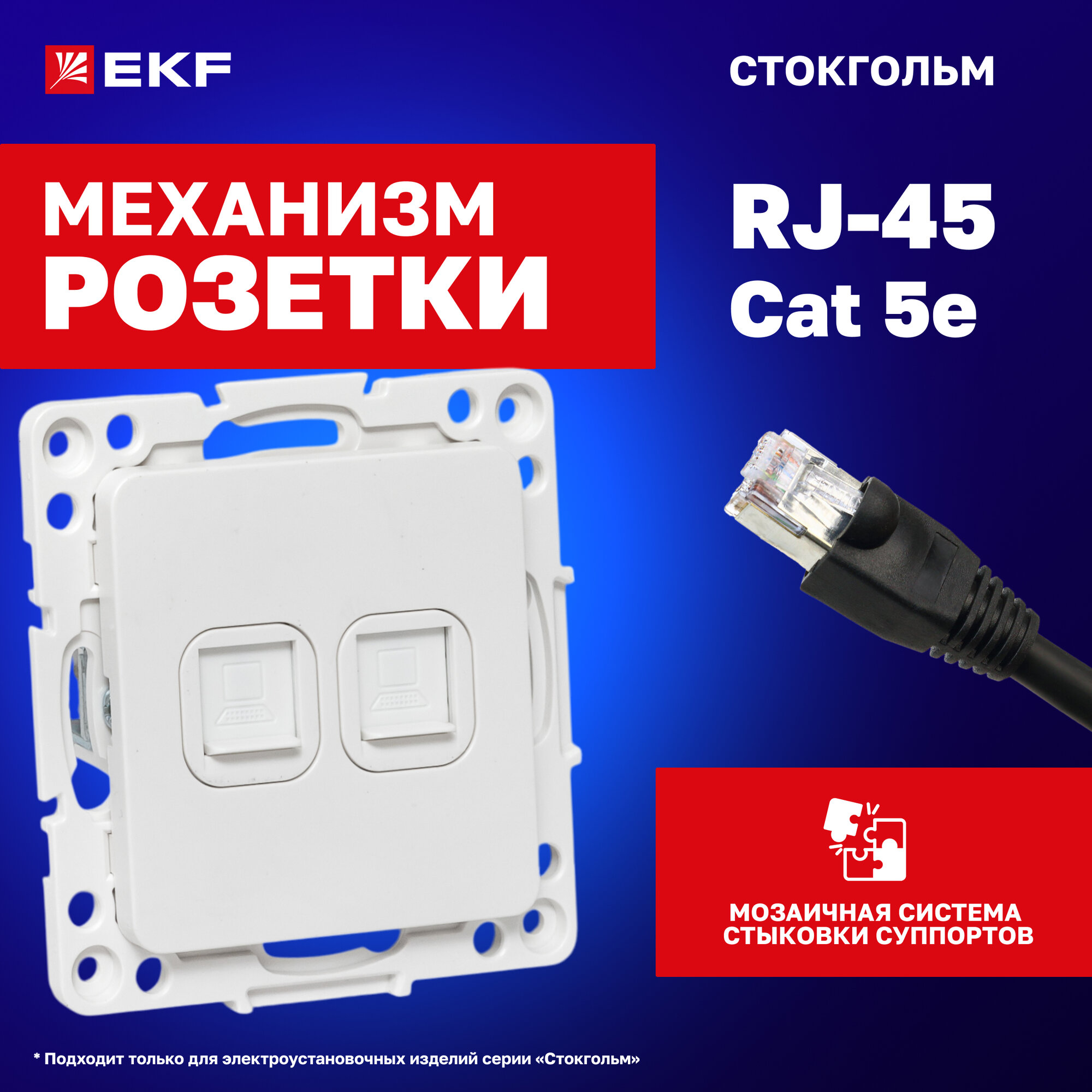 10 цен на Механизм розетки без рамки EKF Стокгольм 2-местная, RJ-45 Cat 5e, белый