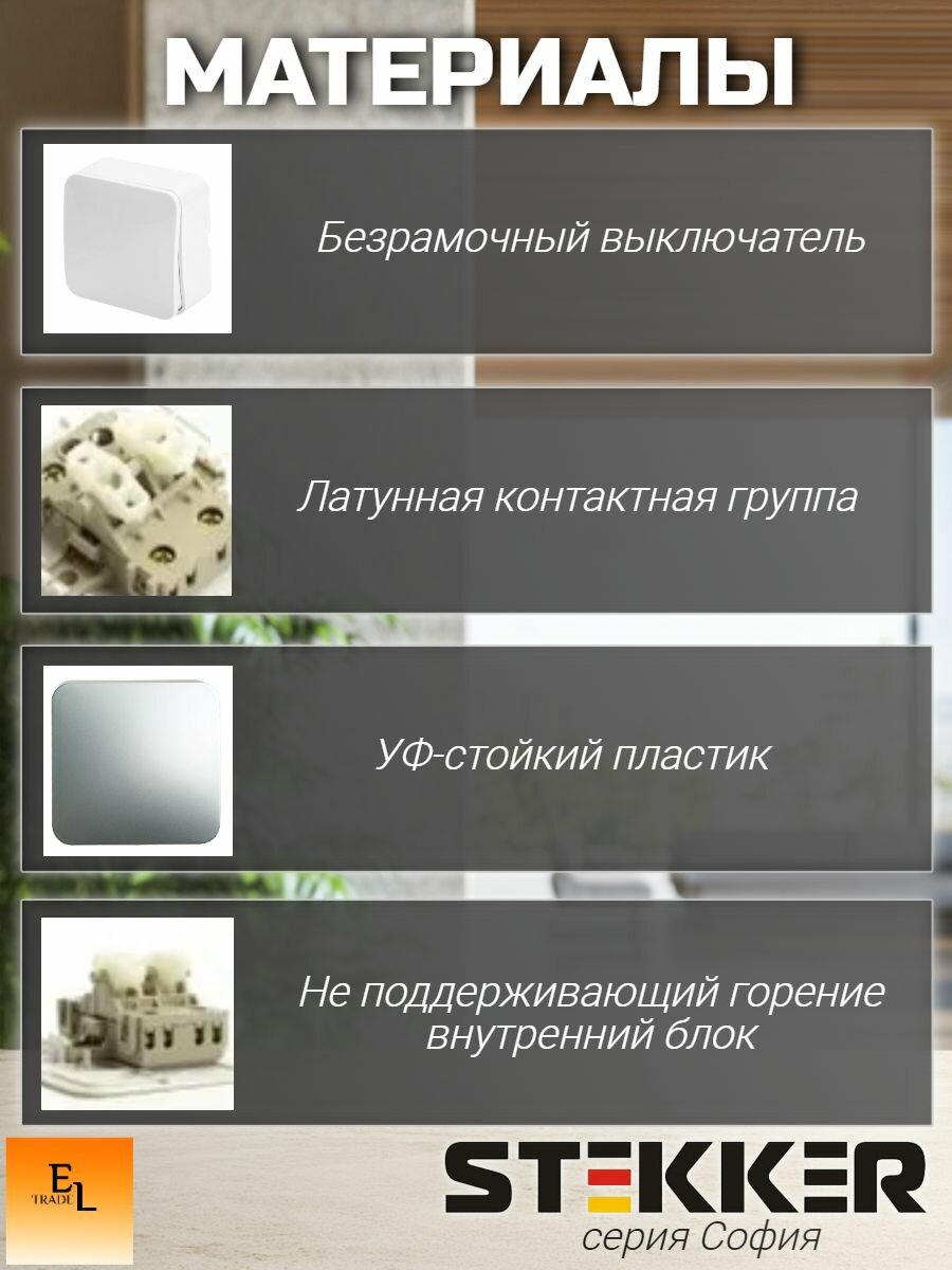 Выключатель одноклавишный открытой установки STEKKER, серия софия, серебро, IP20 информация: