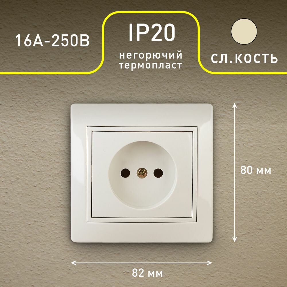 Розетка (комплект 10 шт.) без заземления 2P, 16А-250В, IP20, СУ, слоновая кость 1 200 ₽