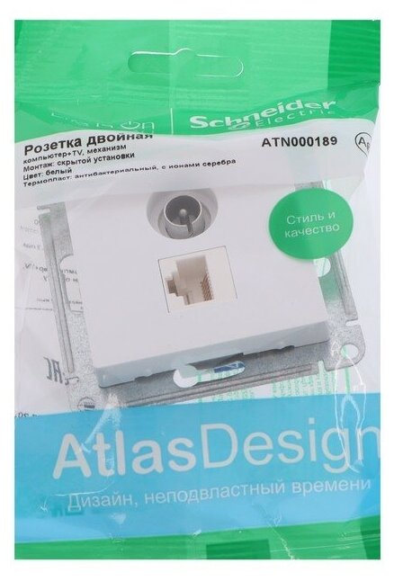 Розетка двойная TV + компьютерная RJ45, кат. 5Е (белый) Atlas Design Systeme Electric, ATN000189 информация: