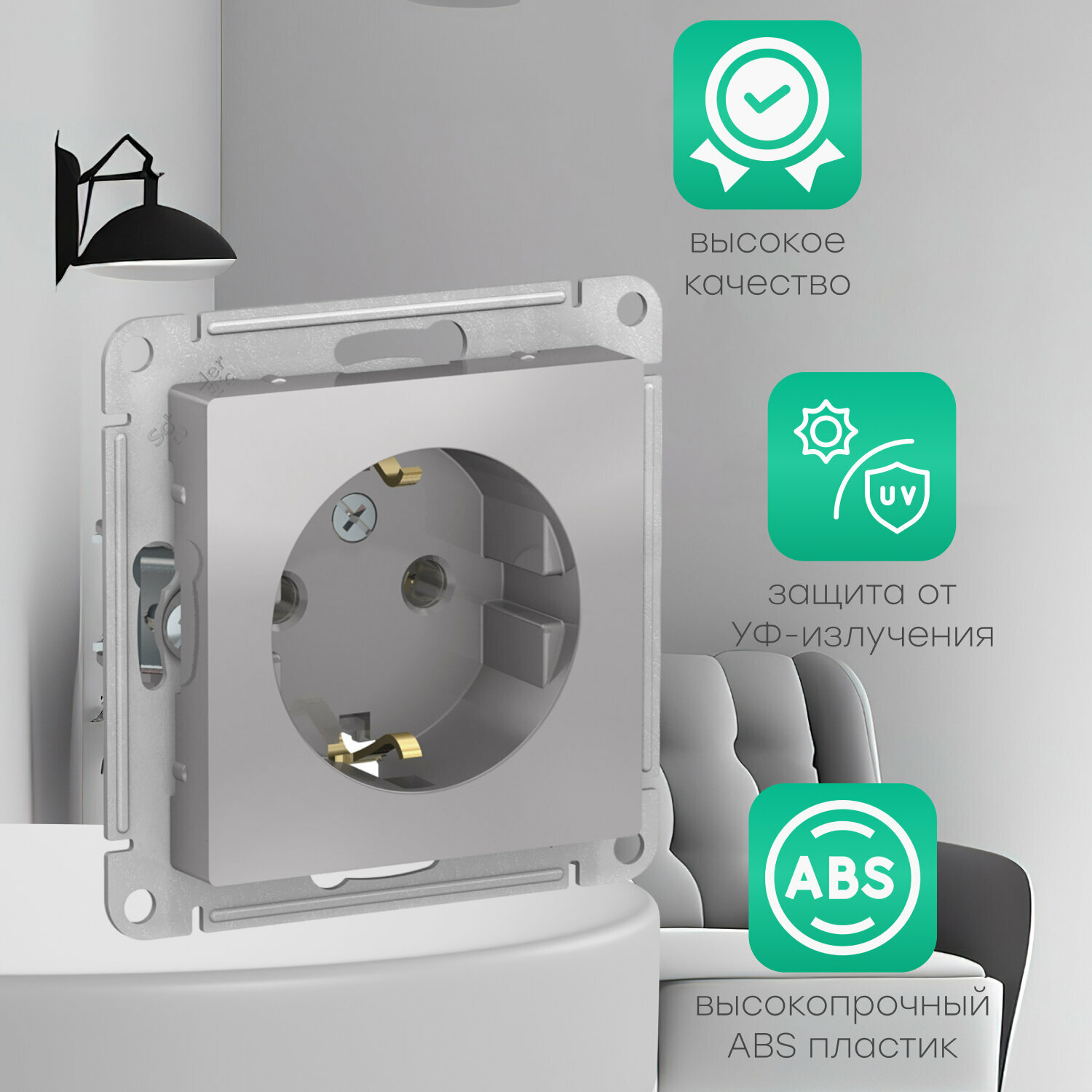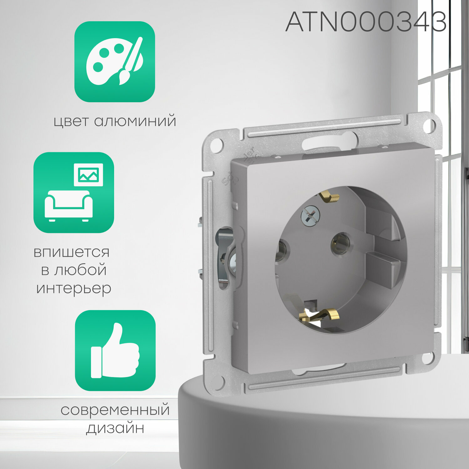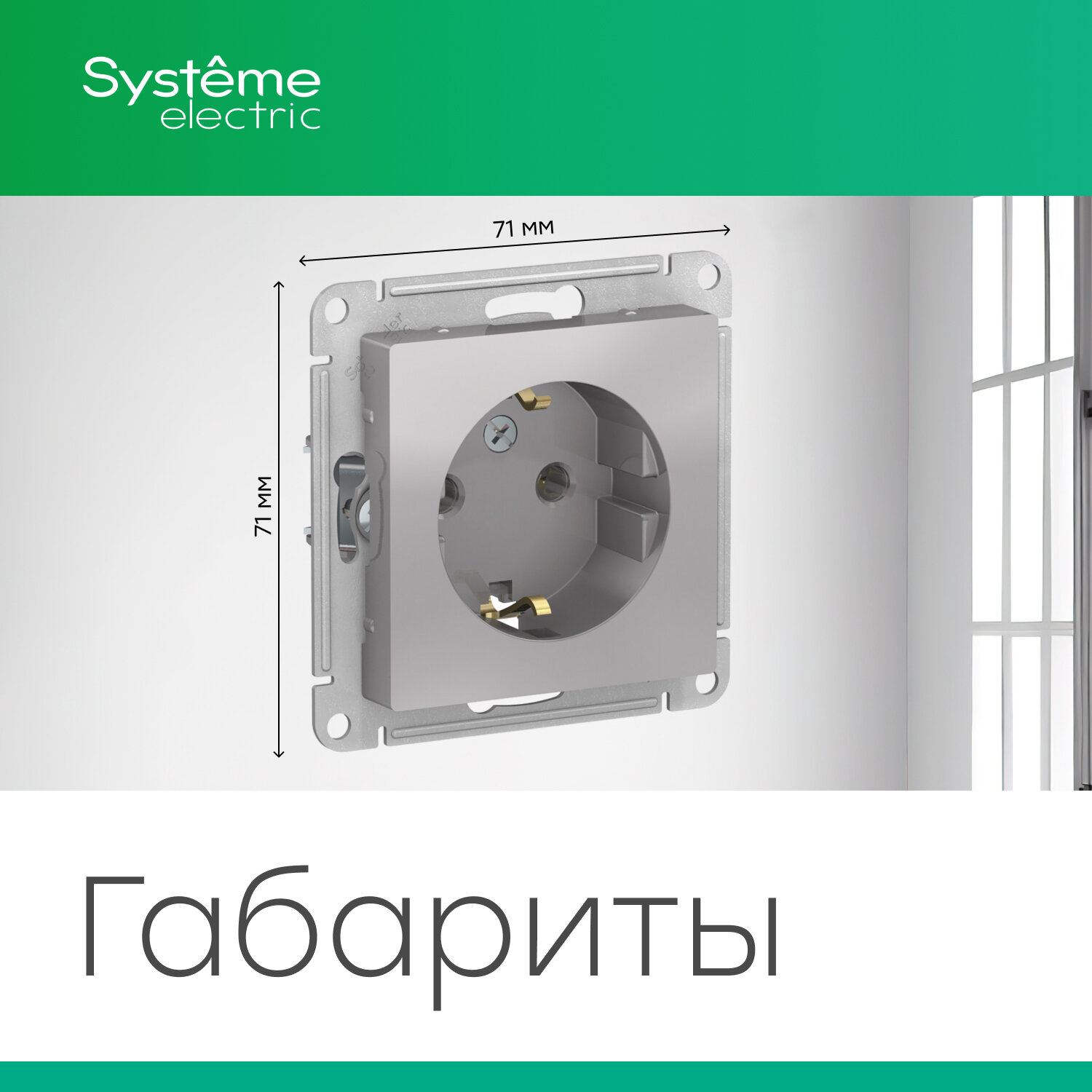 Розетка с заземлением Systeme Schneider Electric AtlasDesign, 16А, механизм, алюминий ATN000343 комплект 5 шт информация: