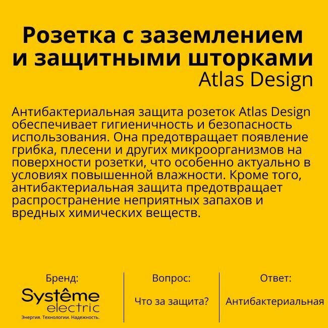 Отзывы на Розетка электрическая Systeme Electric Atlas Design с заземлением и с защитными шторками, 16А Шампань ATN000545 - 1 шт.
