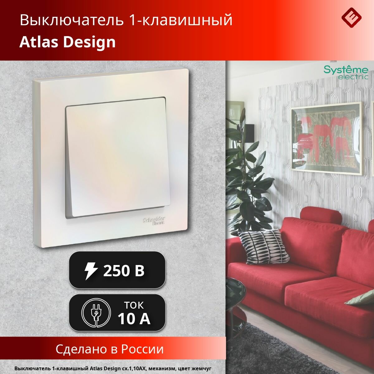 10 цен на Одноклавишный выключатель цвета жемчуг сх.1, 10АХ, механизм Systeme Electric AtlasDesign (комплект 3шт)
