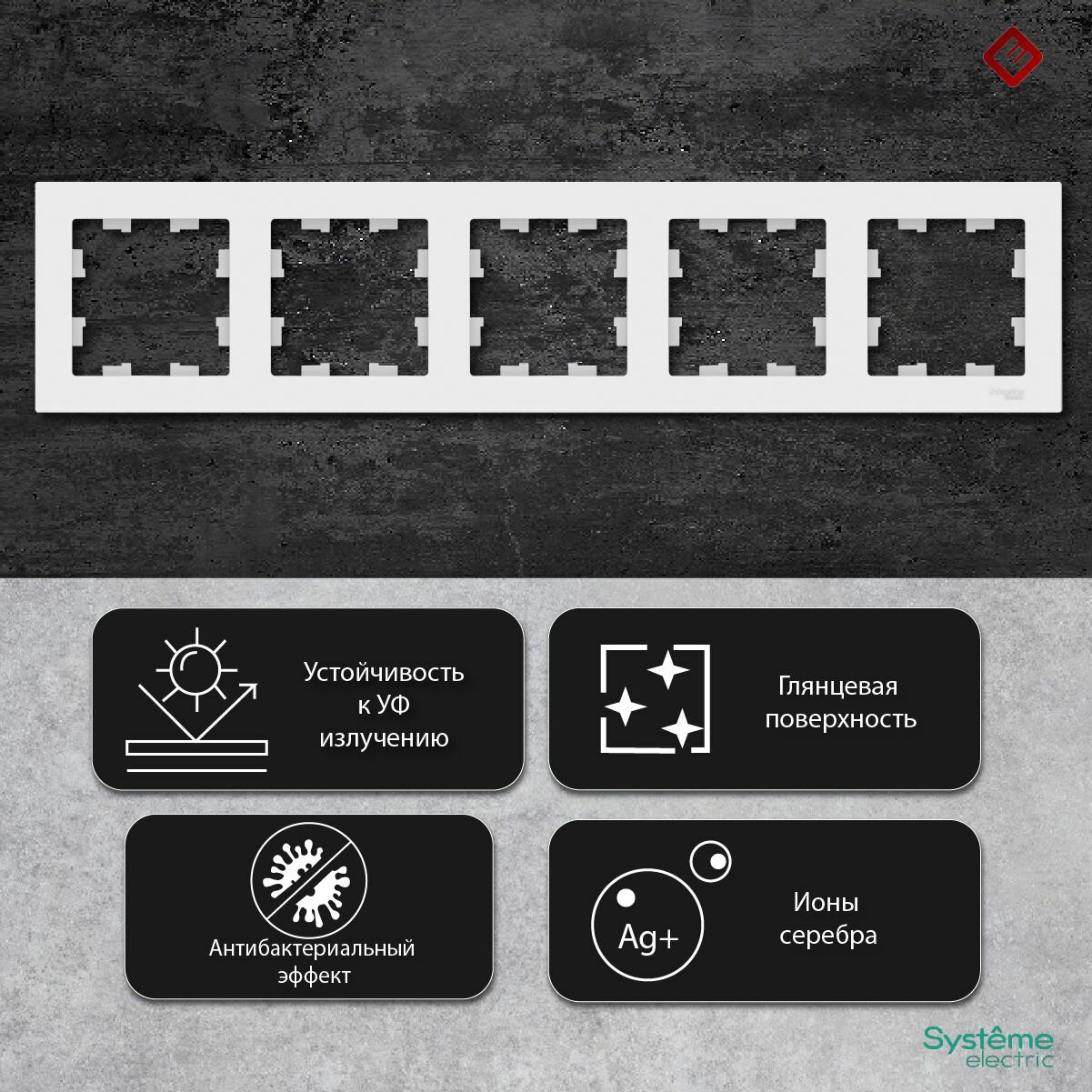 Рамка для розеток и выключателей пятипостовая (Белый), Schneider Electric AtlasDesign (комплект 3шт) информация: