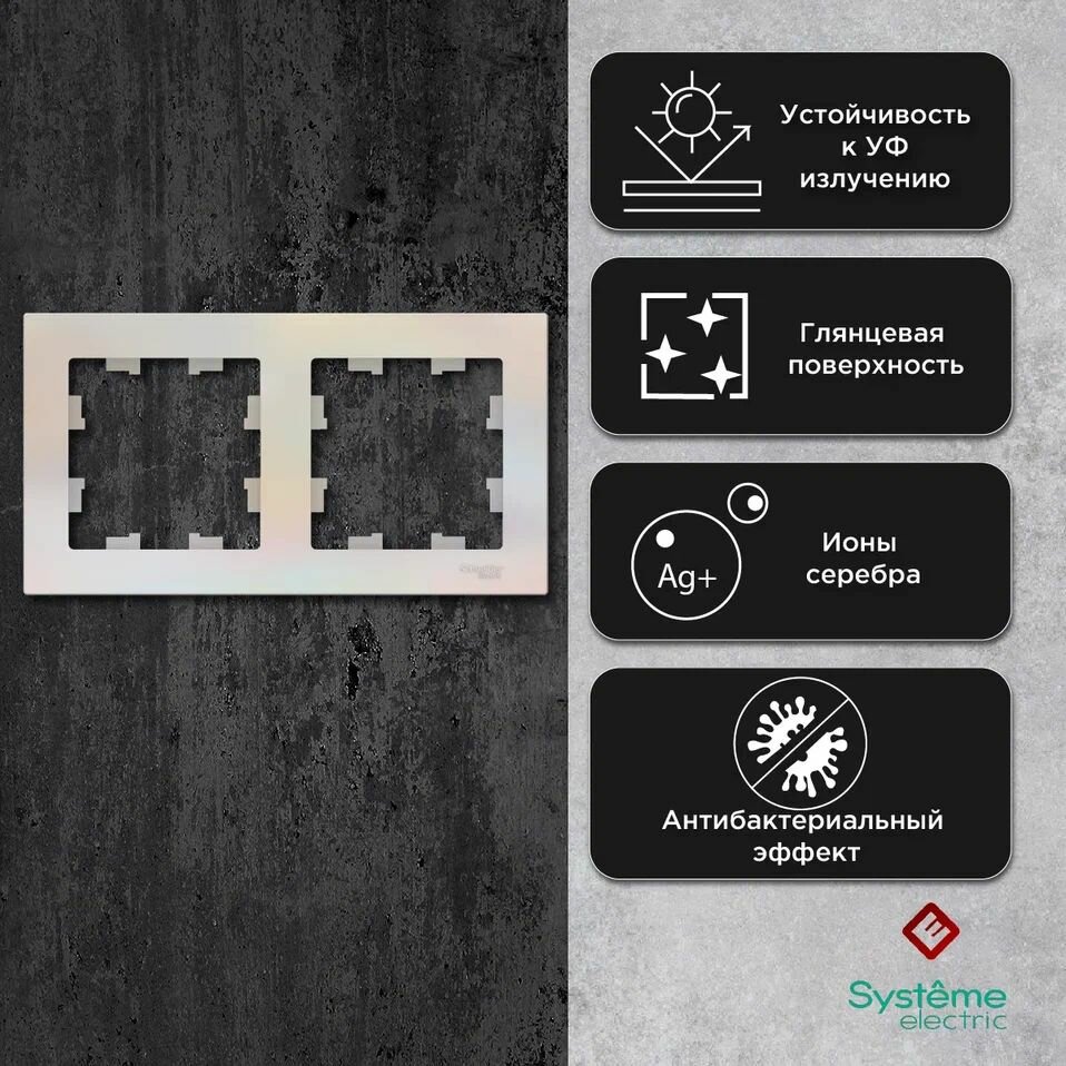 Рамка для розеток и выключателей двухпостовая (Жемчуг), Schneider Electric AtlasDesign (комплект 8шт) информация: