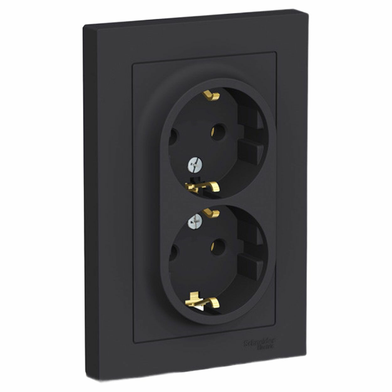 Отзывы на Розетка двойная с заземлением в сборе Systeme Electric (Schneider Electric) AtlasDesign 16А, карбон ATN001024 5шт