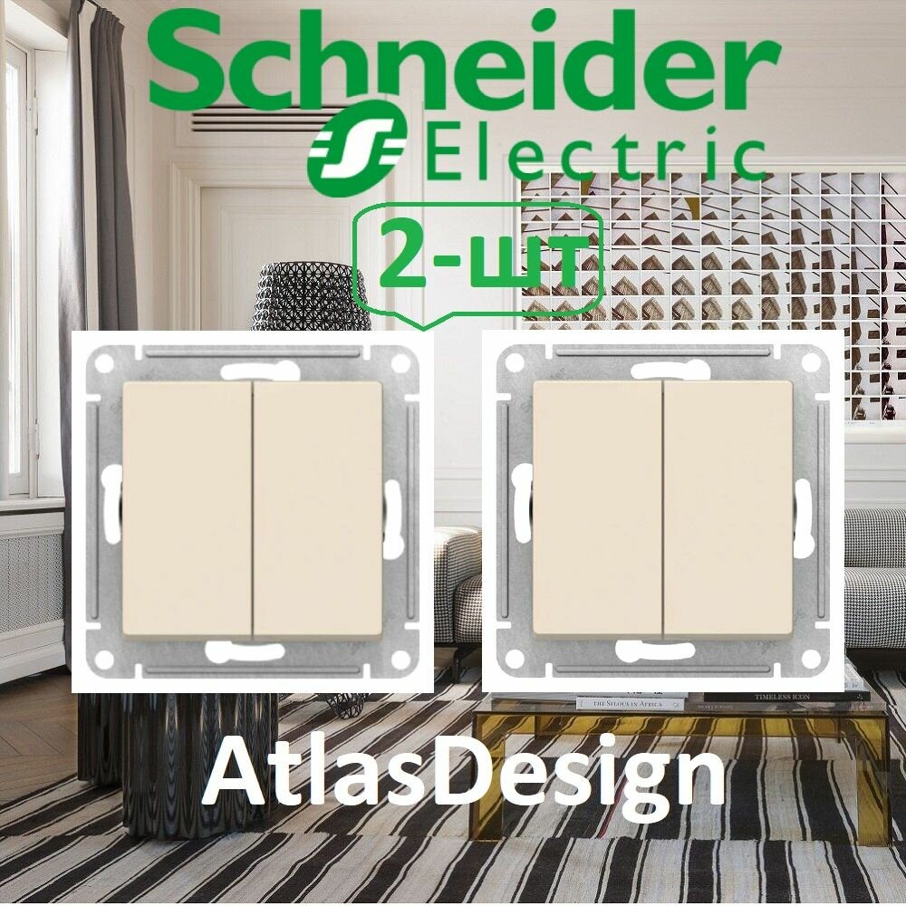Выключатель Schneider Electric AtlasDesign, 2-клавишный, бежевый, ATN000251, 3 шт.