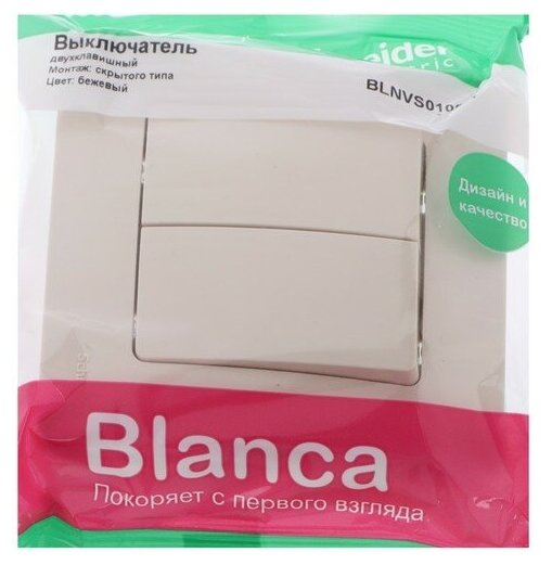 Выключатель 2-кл. СП Blanca 10А IP20 (сх. 5) 250В беж. SchE, SCHNEIDER ELECTRIC BLNVS010507 (1 шт.) информация: