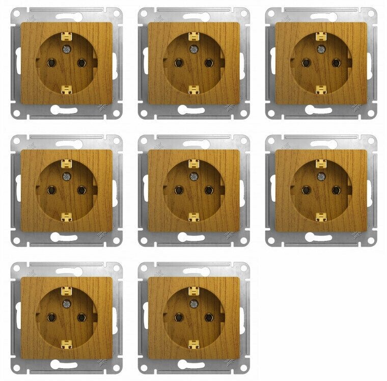 Розетка с заземлением, (в сборе), Дерево Дуб, Schneider Electric Glossa (комплект 8шт) информация: