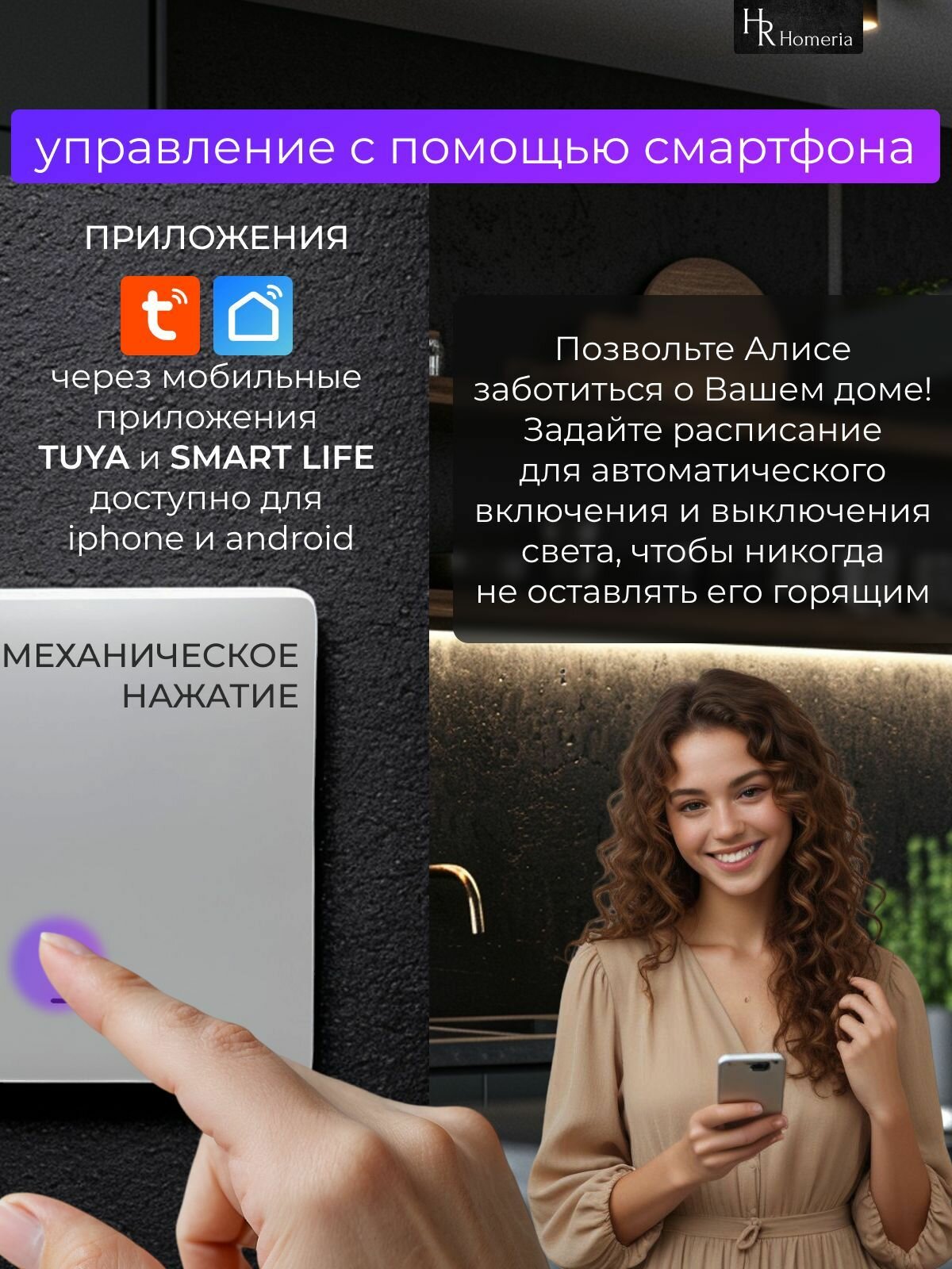 Умный выключатель с Алисой одноклавишный кликер Homeria, IP44 информация:
