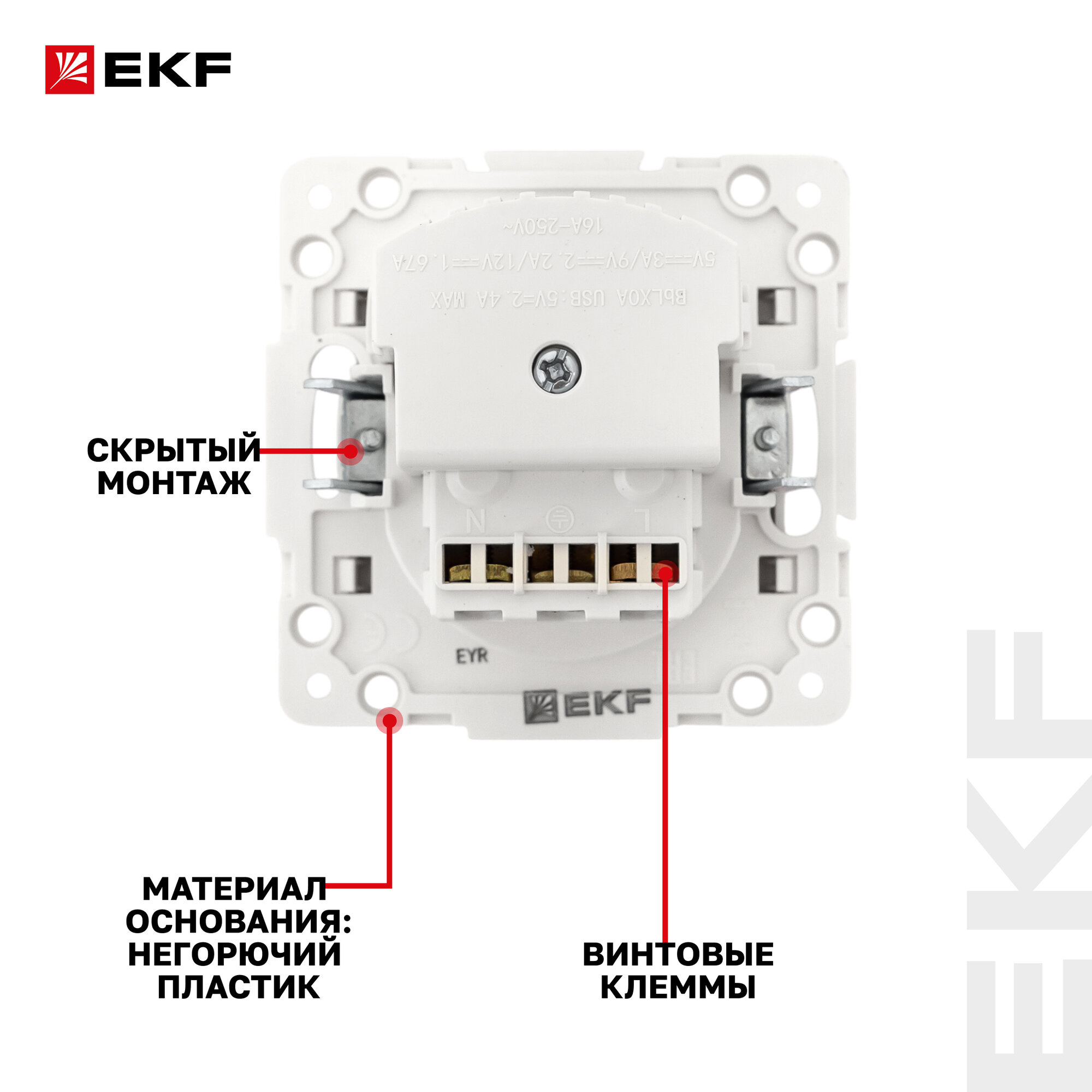 10 цен на Механизм розетки без рамки EKF Стокгольм 1-местная с заземлением, Quick Charge 3.0 USB Type-A и Type-C, 16А, белый