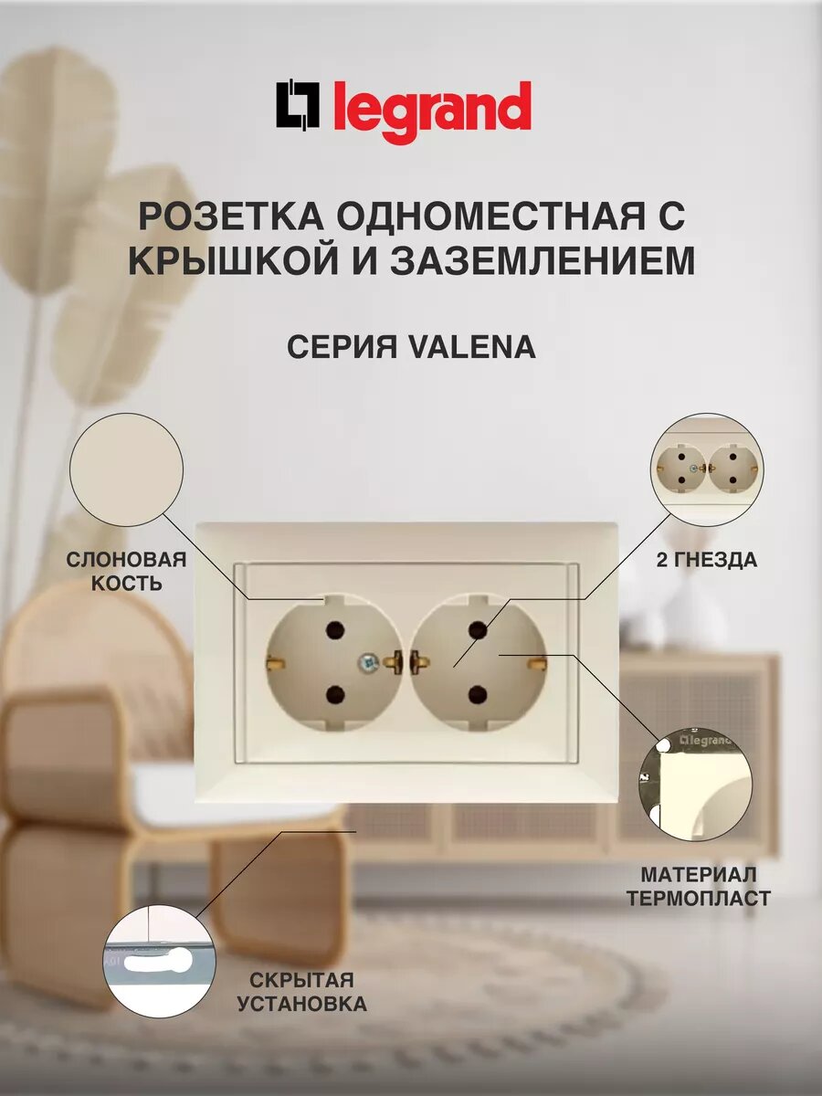 10 цен на Розетка двухместная Legrand Valena Classic, с заземлением, 16А 250В, слоновая кость