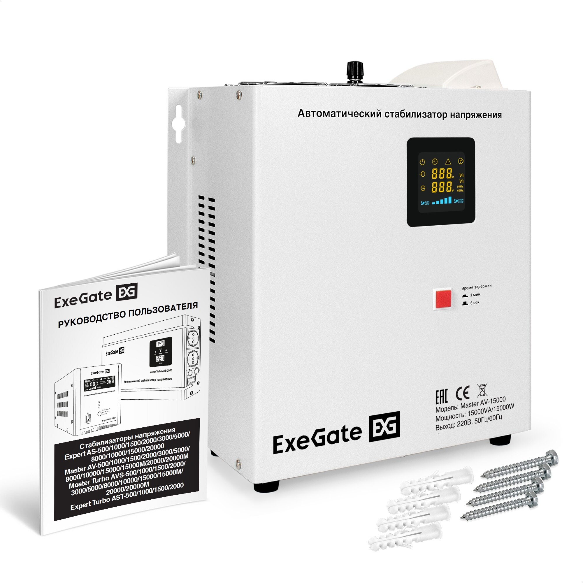 Отзывы на Стабилизатор напряжения настенный/напольный ExeGate Master AV-15000M (1КПД 98%, 5 уровней защиты, задержка, метал. корпус, 1*Schuko+клем. колодка) EX298699RUS