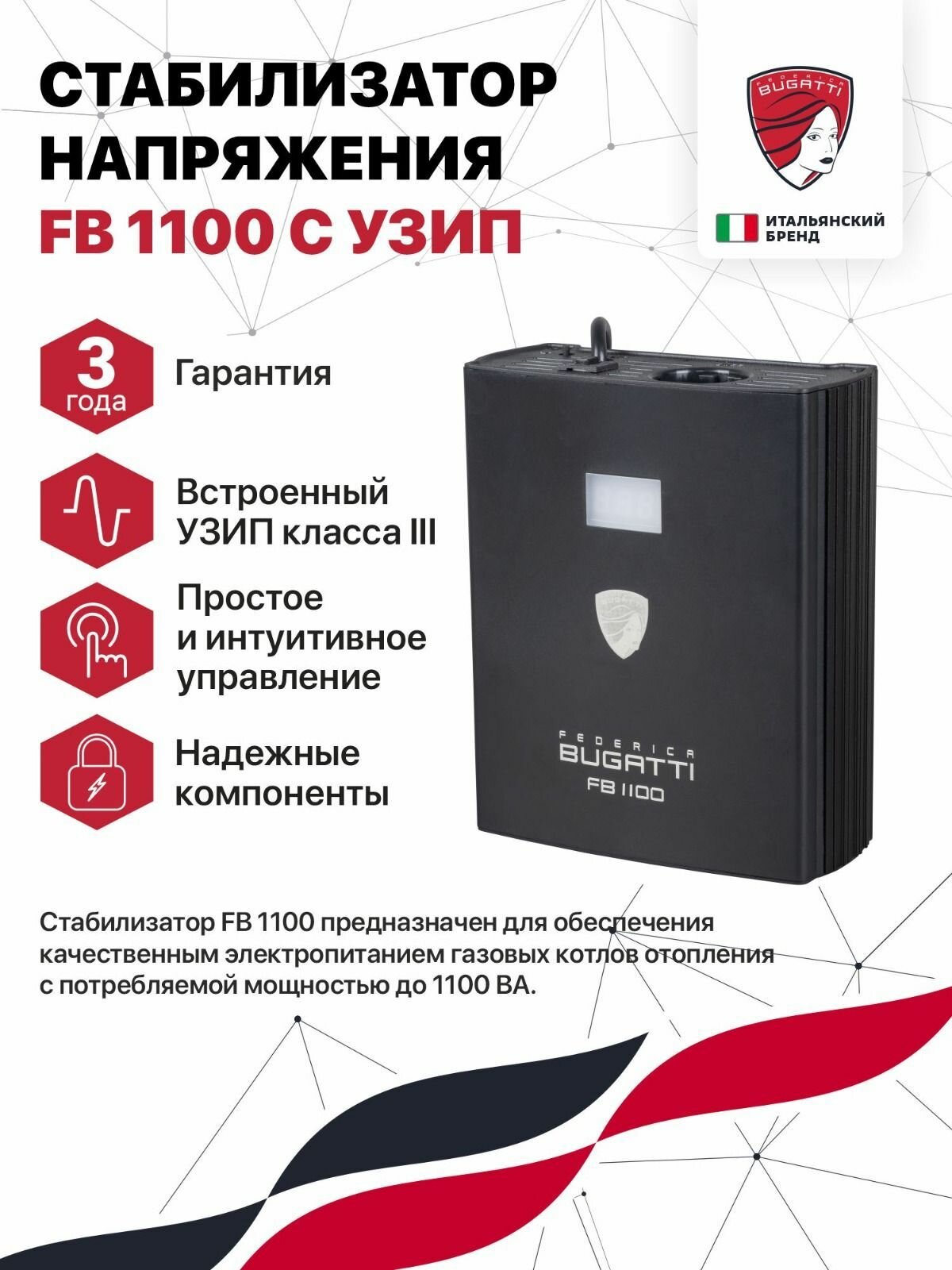 Стабилизатор напряжения Federica Bugatti FB 1100 с УЗИП информация: