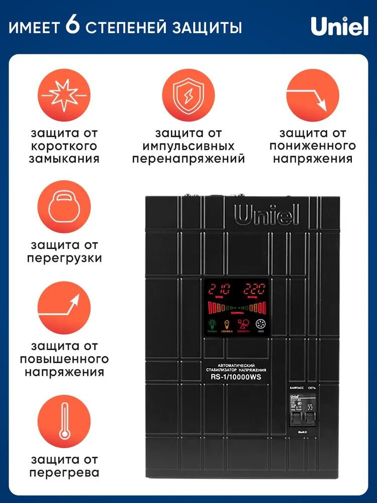 Стабилизатор напряжения, 10000 ВА, с гальванической развязкой, настенный, Uniel информация: