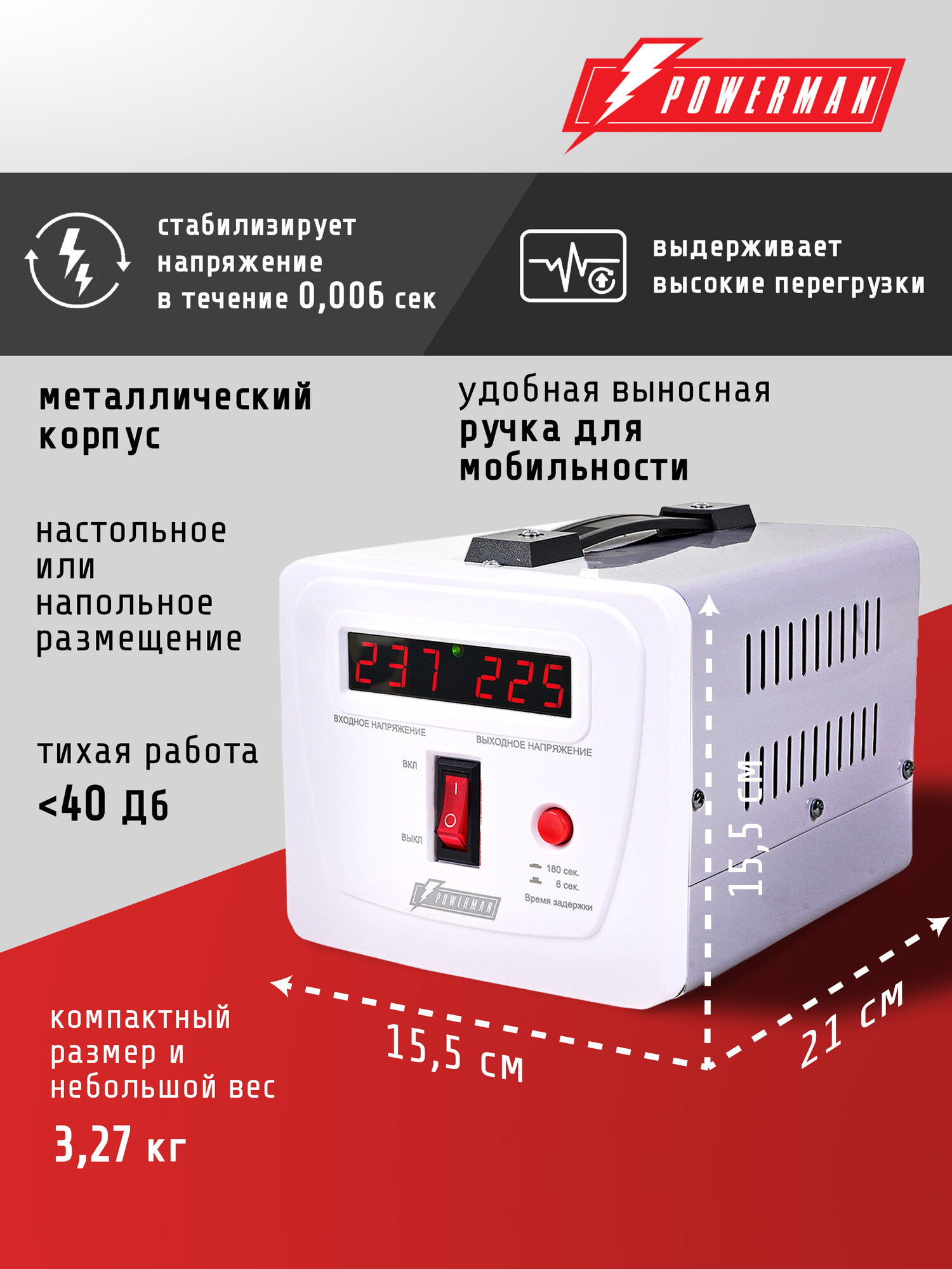 Стабилизатор напряжения Powerman AVS E 3000 для ПК, ТВ и другой техники, для котла