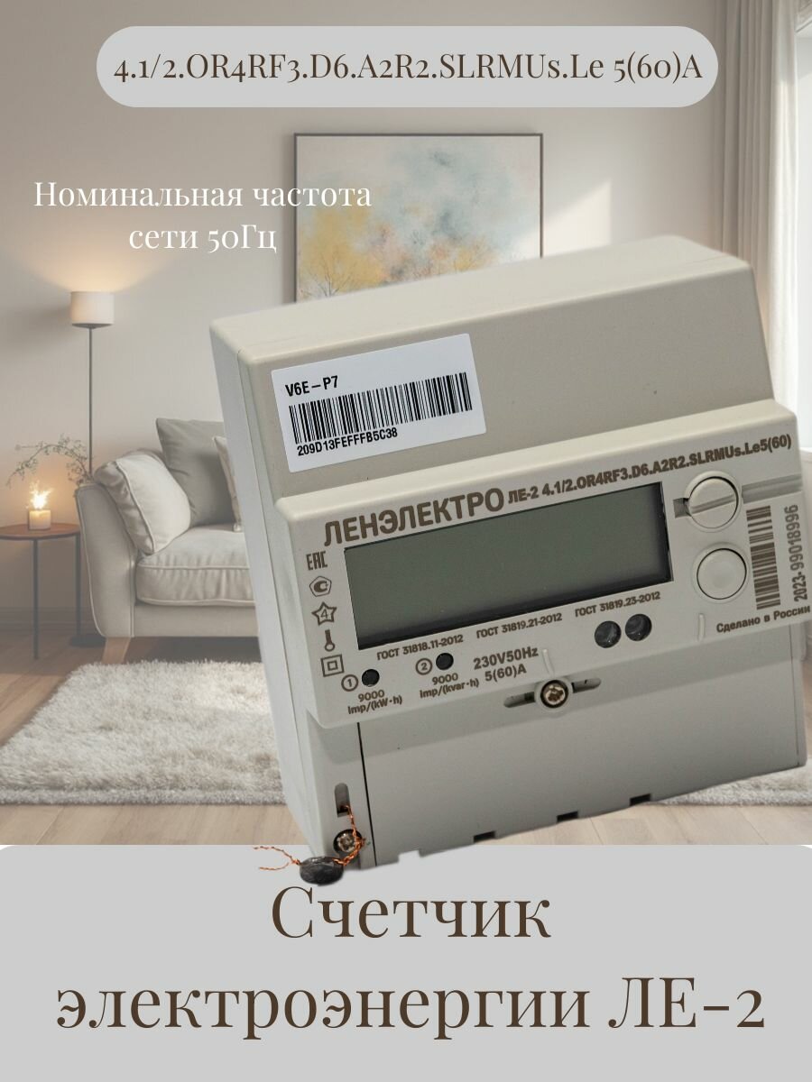 Электросчетчик однофазный ЛЕ-2 4.1/2. ОR4RF3. D6. A2R2. SLRMUs. Le5(60) (СП) производства компании АО Ленэлектро информация:
