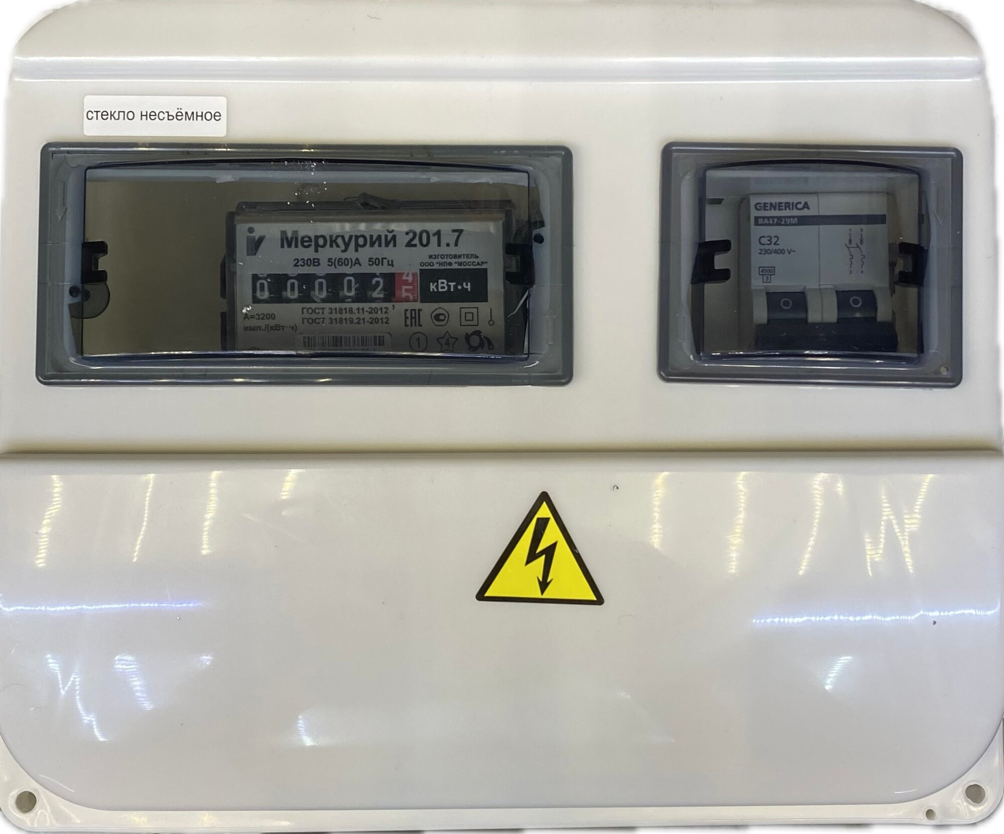 Комплект Гаражный-1М-32: Щит учёта электроэнергии в сборе СК 1-3: счетчик Меркурий 201.7, автомат C32 информация: