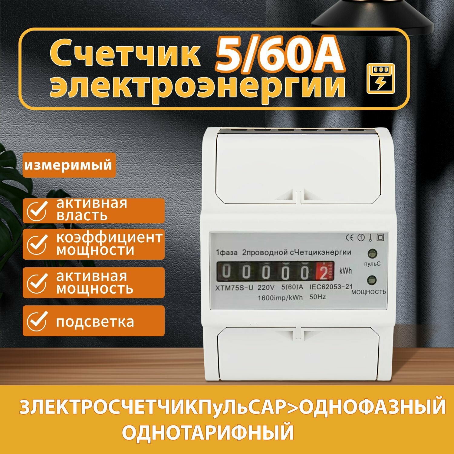 Электросчетчик Пульсар, 5/60A, с механическим индикатором, однофазный, белый информация: