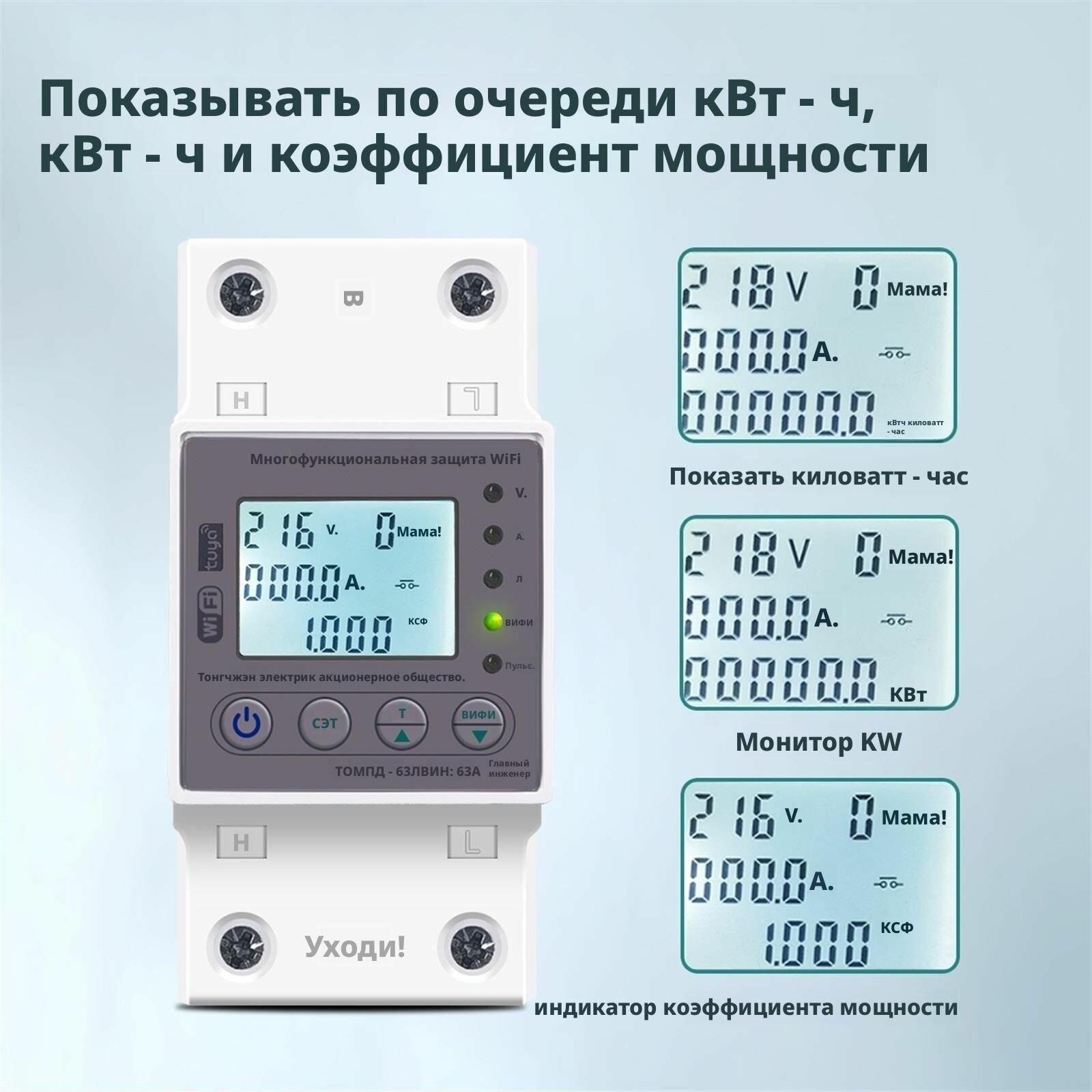 Счетчик цепи WIFI smart switch с защитой от напряжения и утечки, 63A информация: