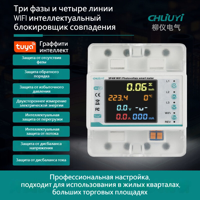 Трехфазный четырехпроводный, интеллектуальная защита от повторного включения, Wi-FI с граффити информация: