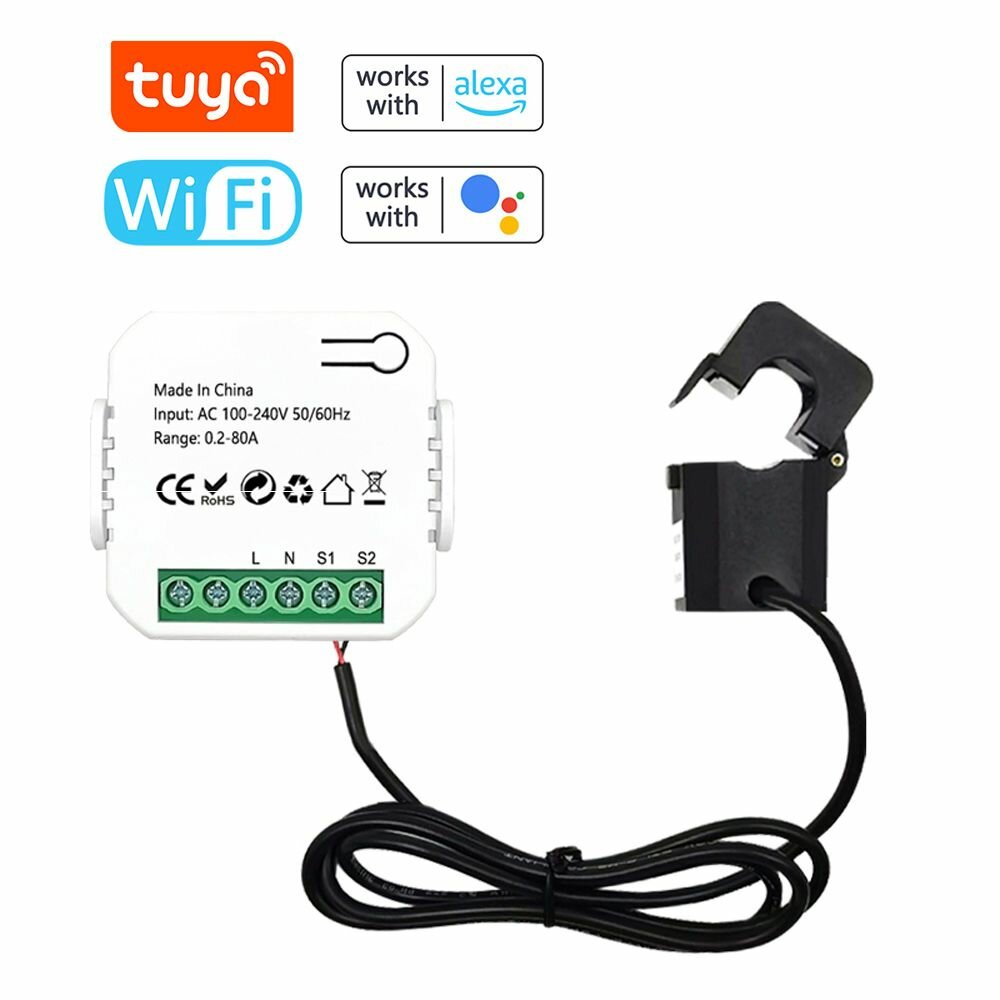 Отзывы на Счетчик энергии Tuya WiFi 80A Зажим трансформатора тока кВтч Монитор мощности, Linkall
