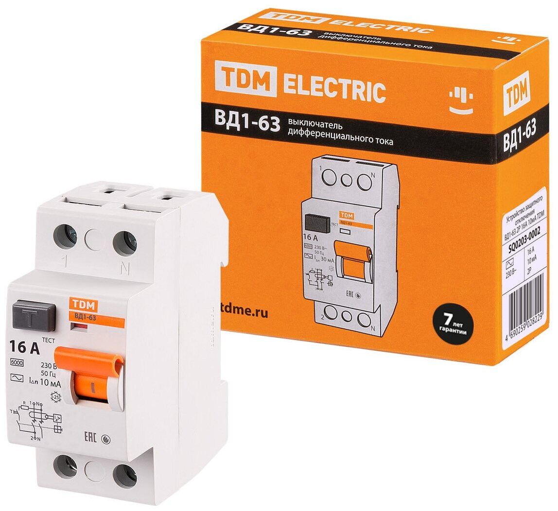 Отзывы на Устройство защитного отключения ВД1-63 2Р 16А 10мА TDM SQ0203-0002 (1 шт.)