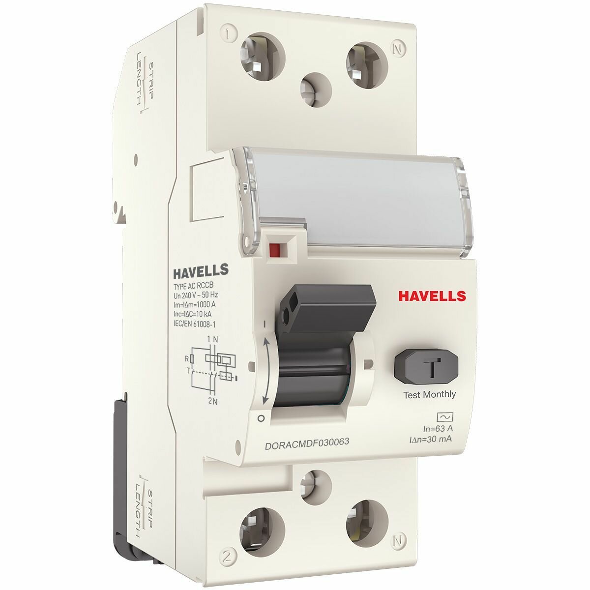 Устройство защитного отключения - Узо Havells 1P+N, In 63А, In 30 мА, Тип АС, 2М. информация: