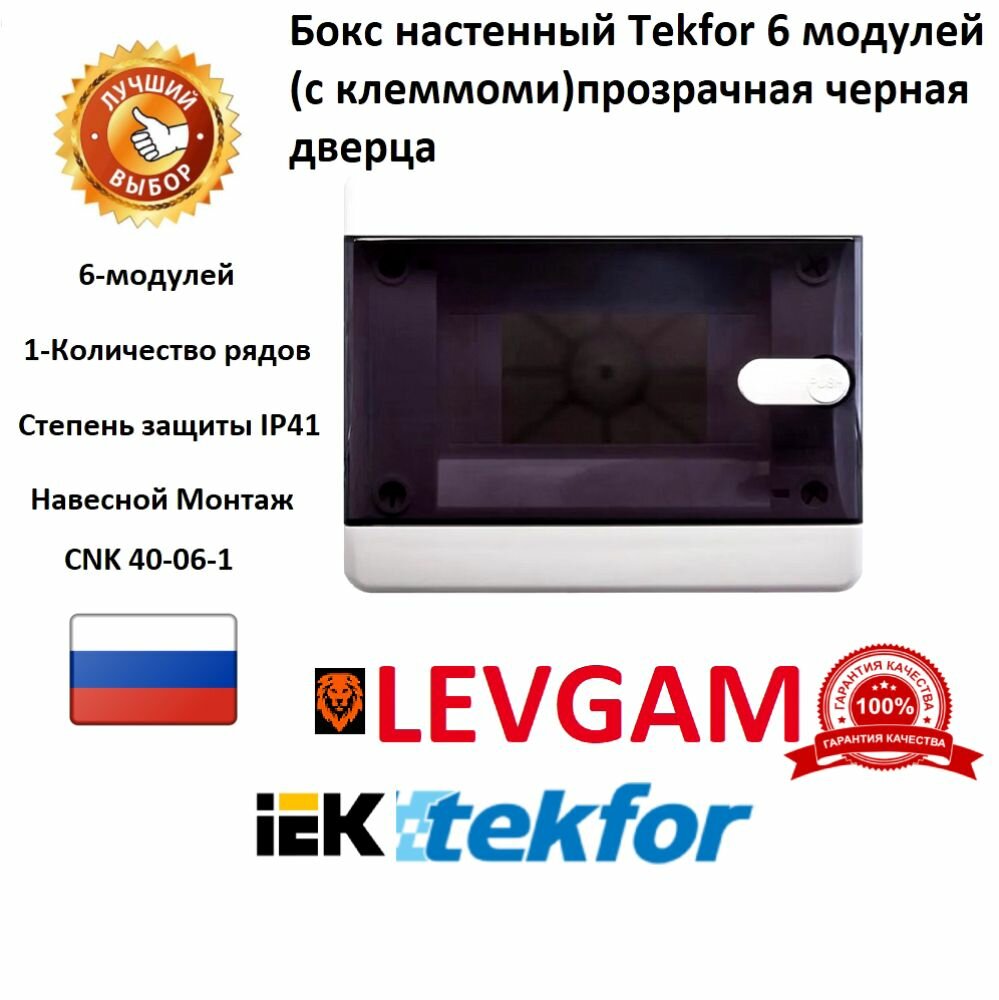 Бокс настенный Tekfor IP41 6 модулей CNK 40-06-1 прозрачная черная дверь информация: