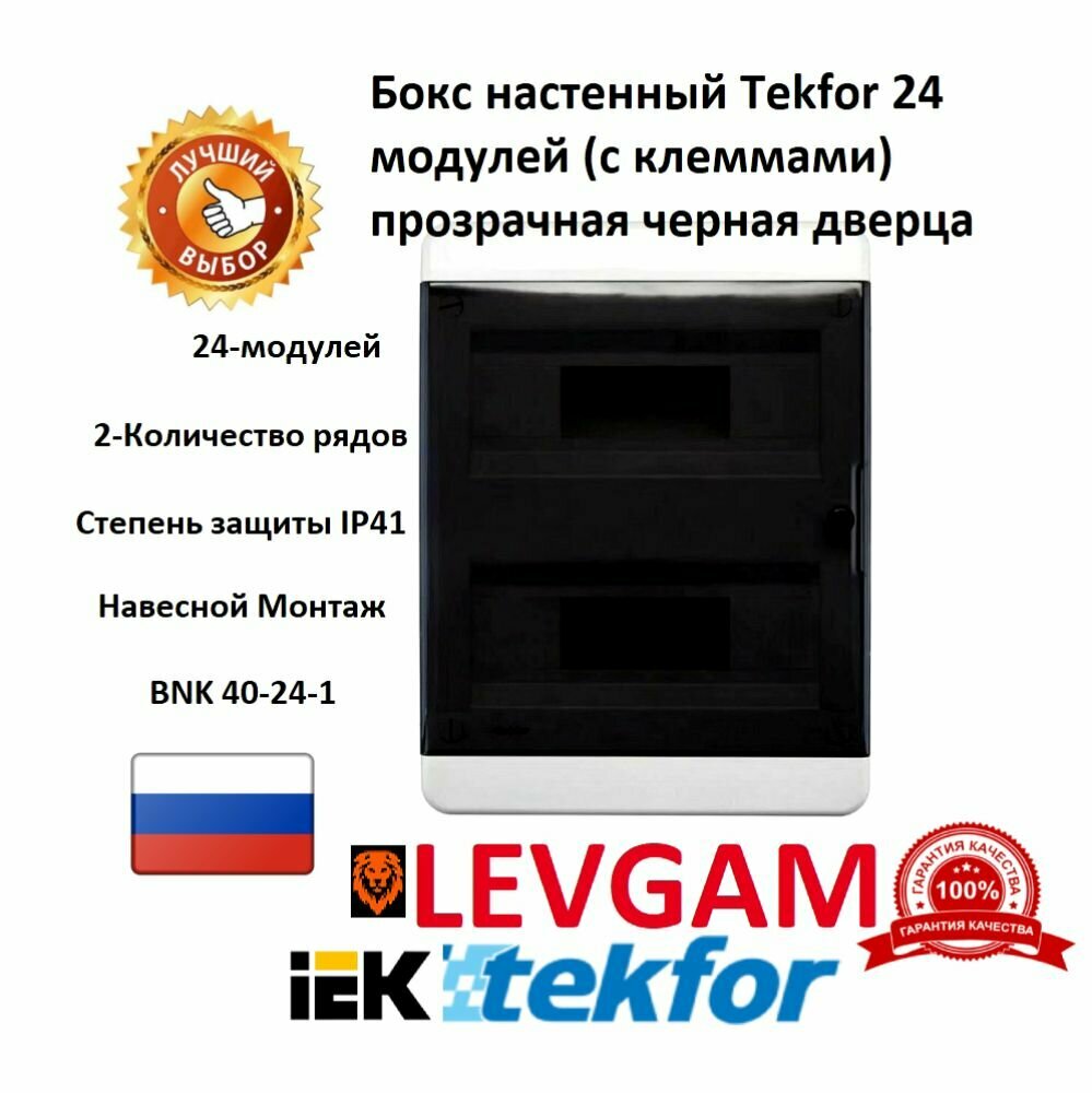 Бокс настенный Tekfor IP41 24 модулей CNK 40-24-1 прозрачная черная дверь информация: