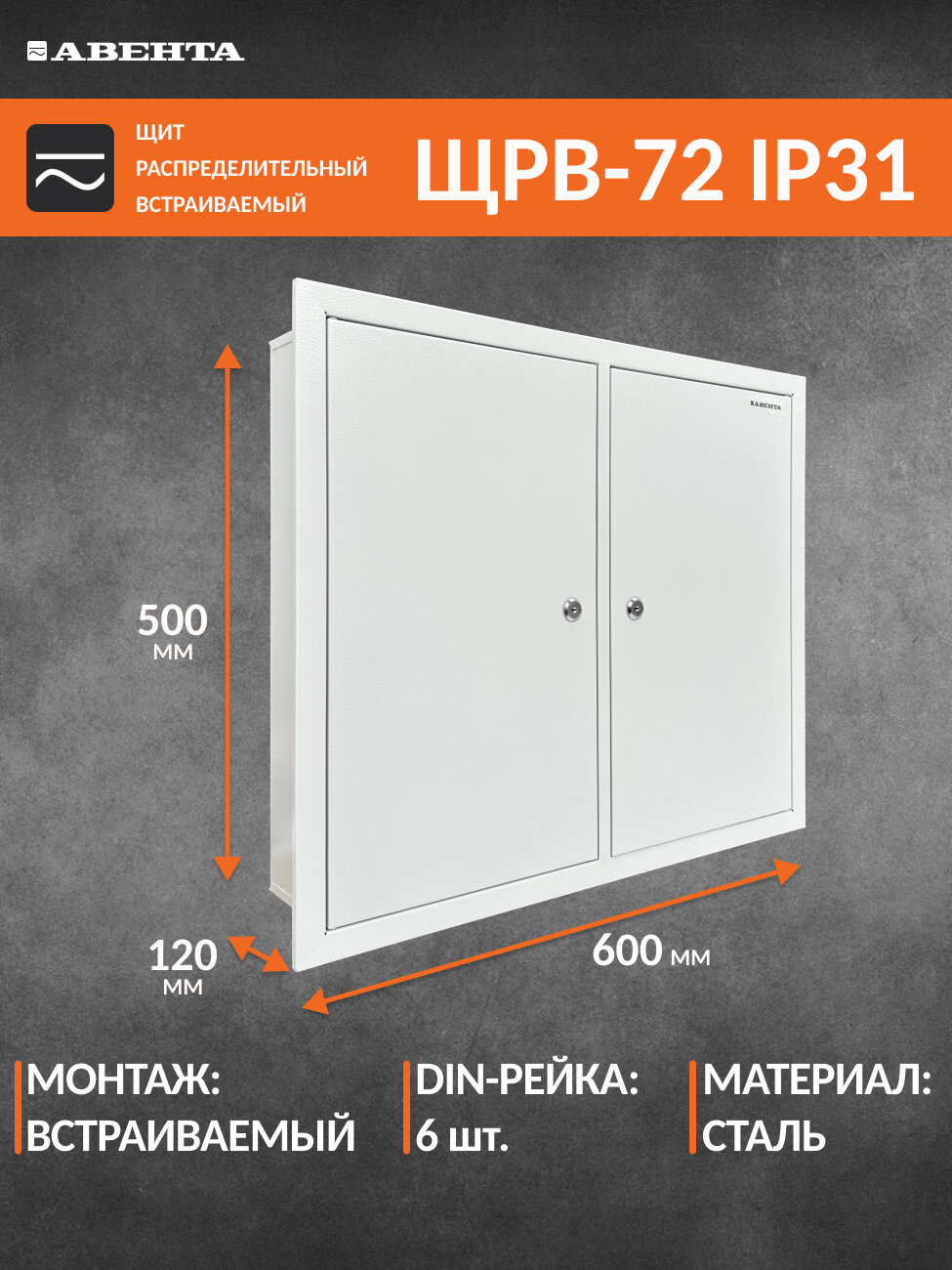Щит распределительный встраиваемый ЩРВ-72 IP31 (500x600x120) металл 0,8 информация: