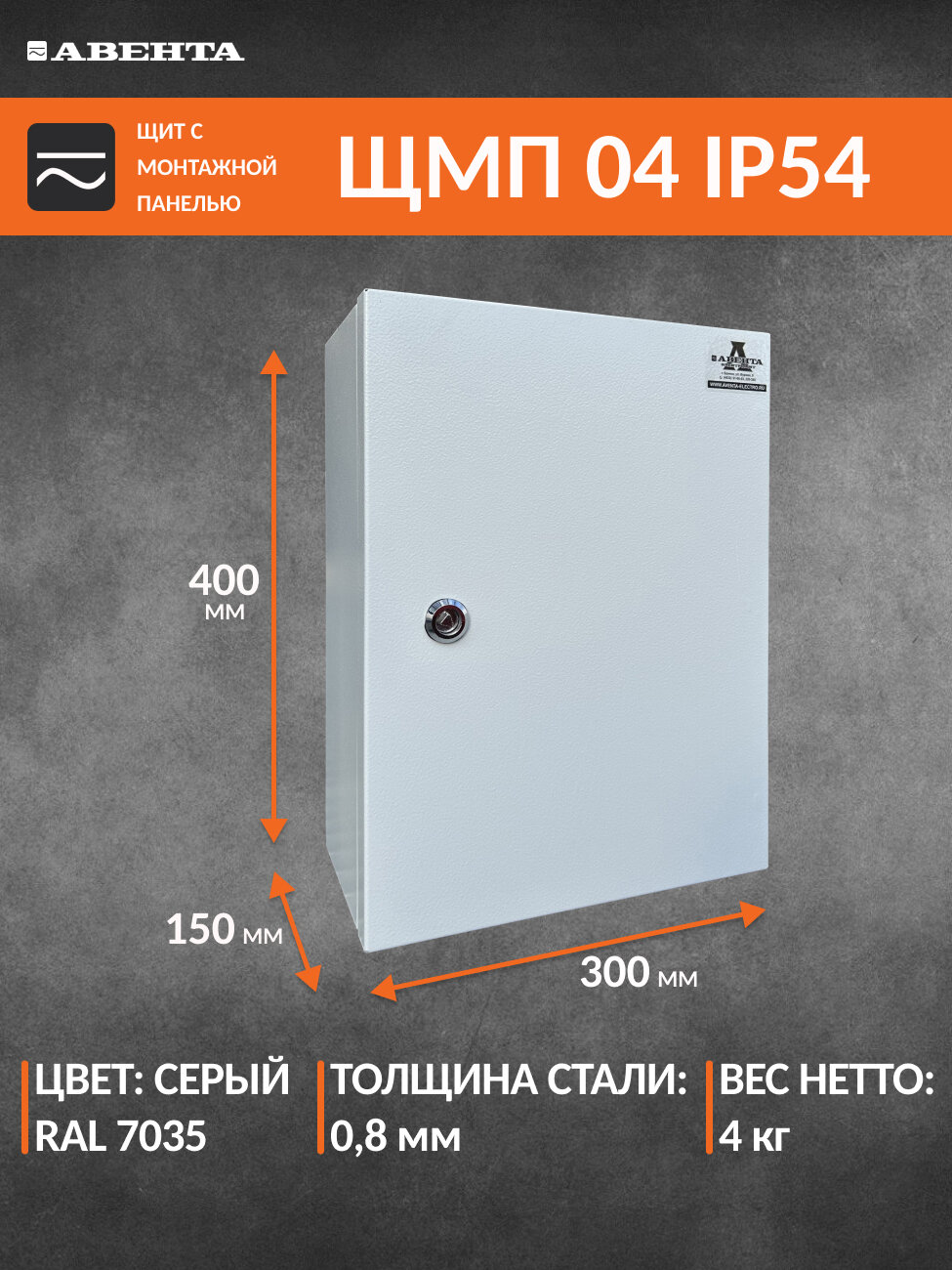 Щит с монтажной панелью ЩМП-04 IP54 (400х300х150) металл 0,8 информация: