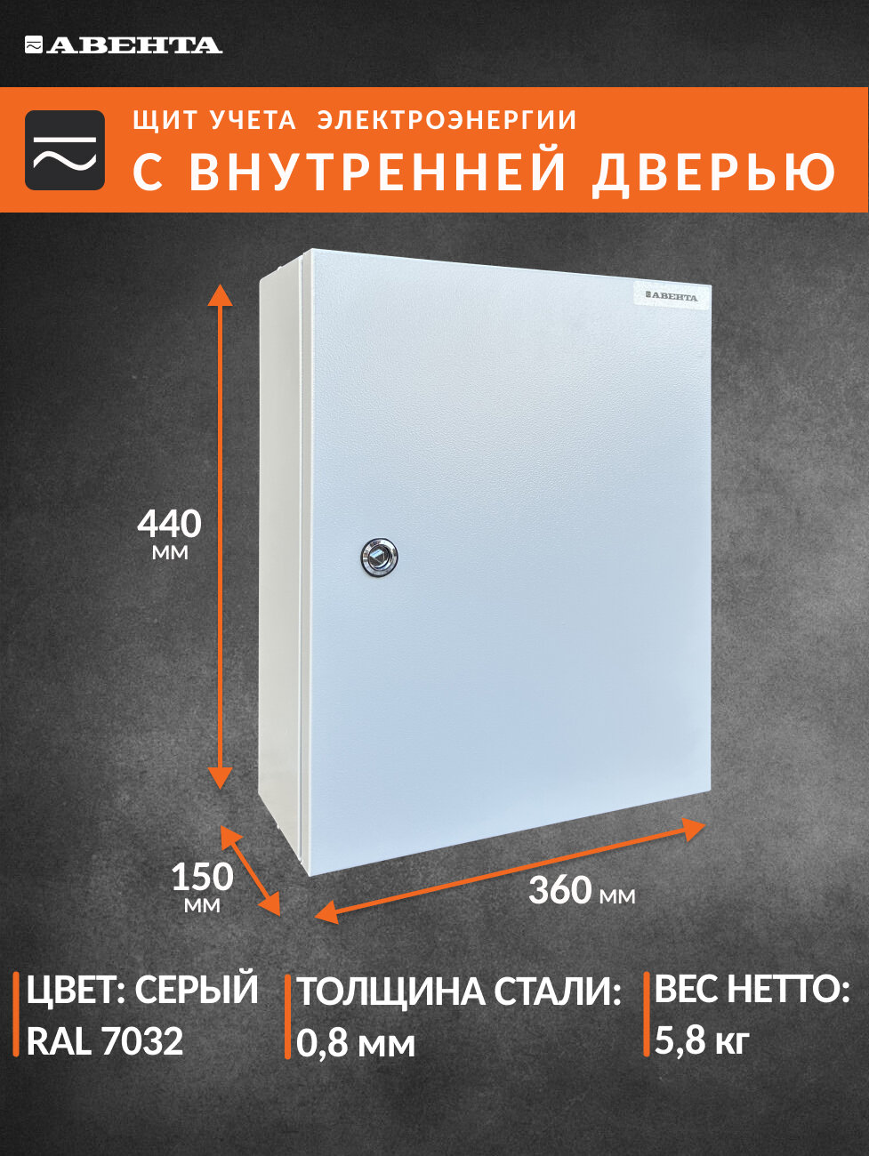 Щит учета ЩУ 3фз. с внутр. дверью IP54 (440х360х150) металл 0,8 информация: