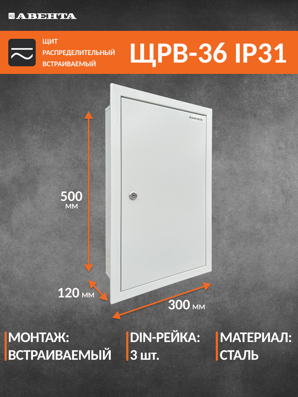 Щит распределительный встраиваемый ЩРВ-36 IP31 (500x300x120) металл информация: